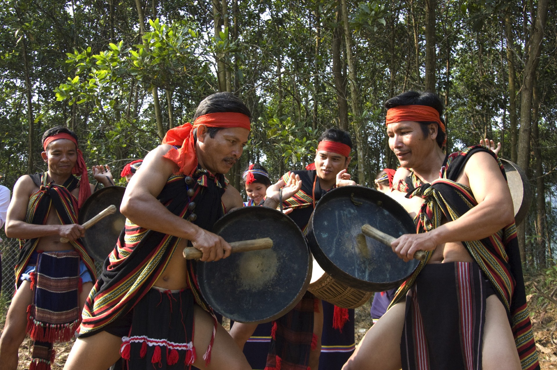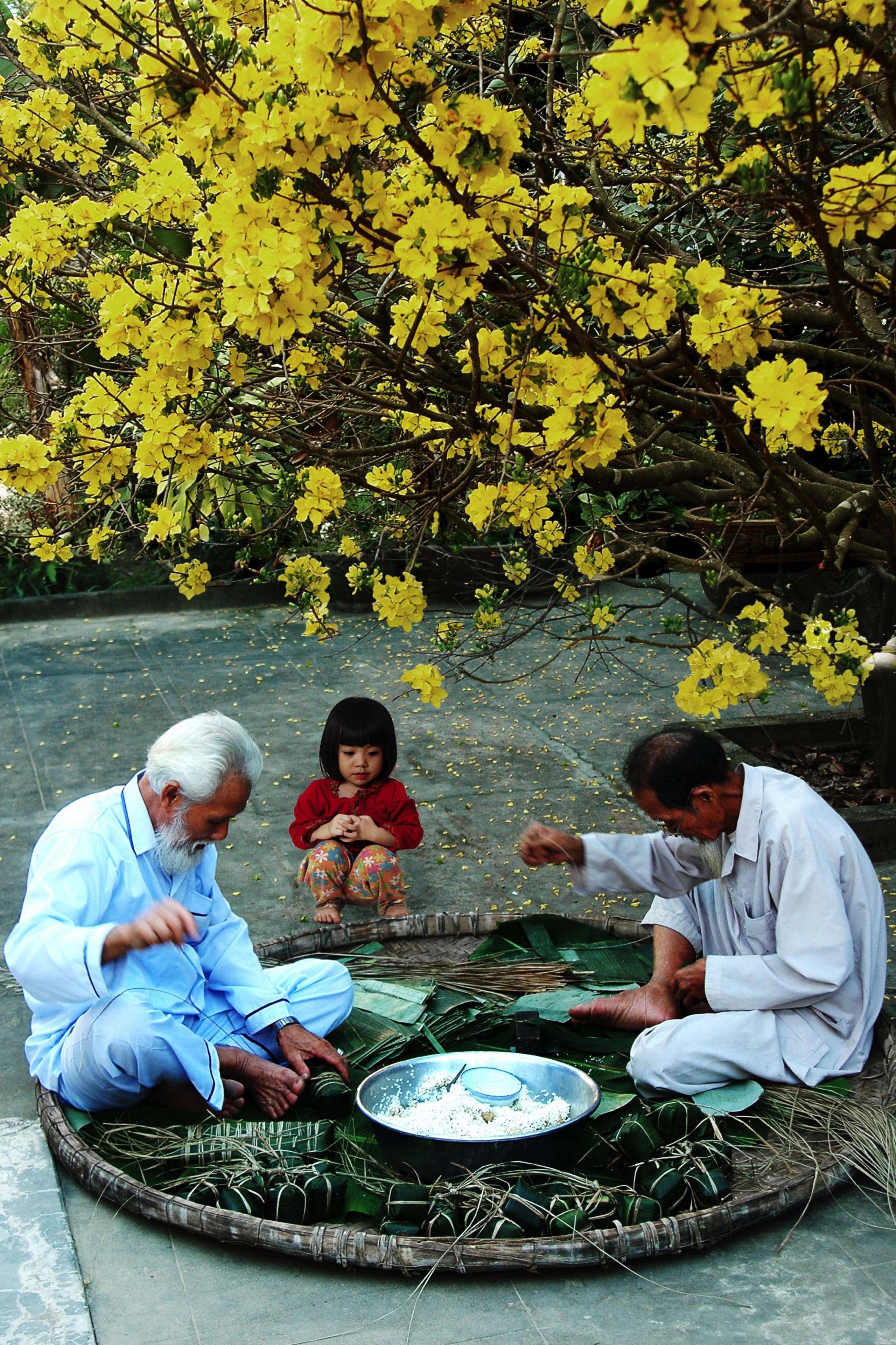 In the past, the courtyards of titular temples and village schools were the most vibrant venues during Tet. Folk games drew everyone in the community and the Hut card game was especially popular. This is both a game and a singing genre beloved by elderly people. Ethnic people native to the Truong Son Mountains and the Central Highlands also celebrate Tet like the Kinh majority. Their villages are full of the sounds of gongs, xoan dances and tan tung da dắ dances. Their cultures’ vitality is evident in the sight of young men and women playing gongs by nêu trees.