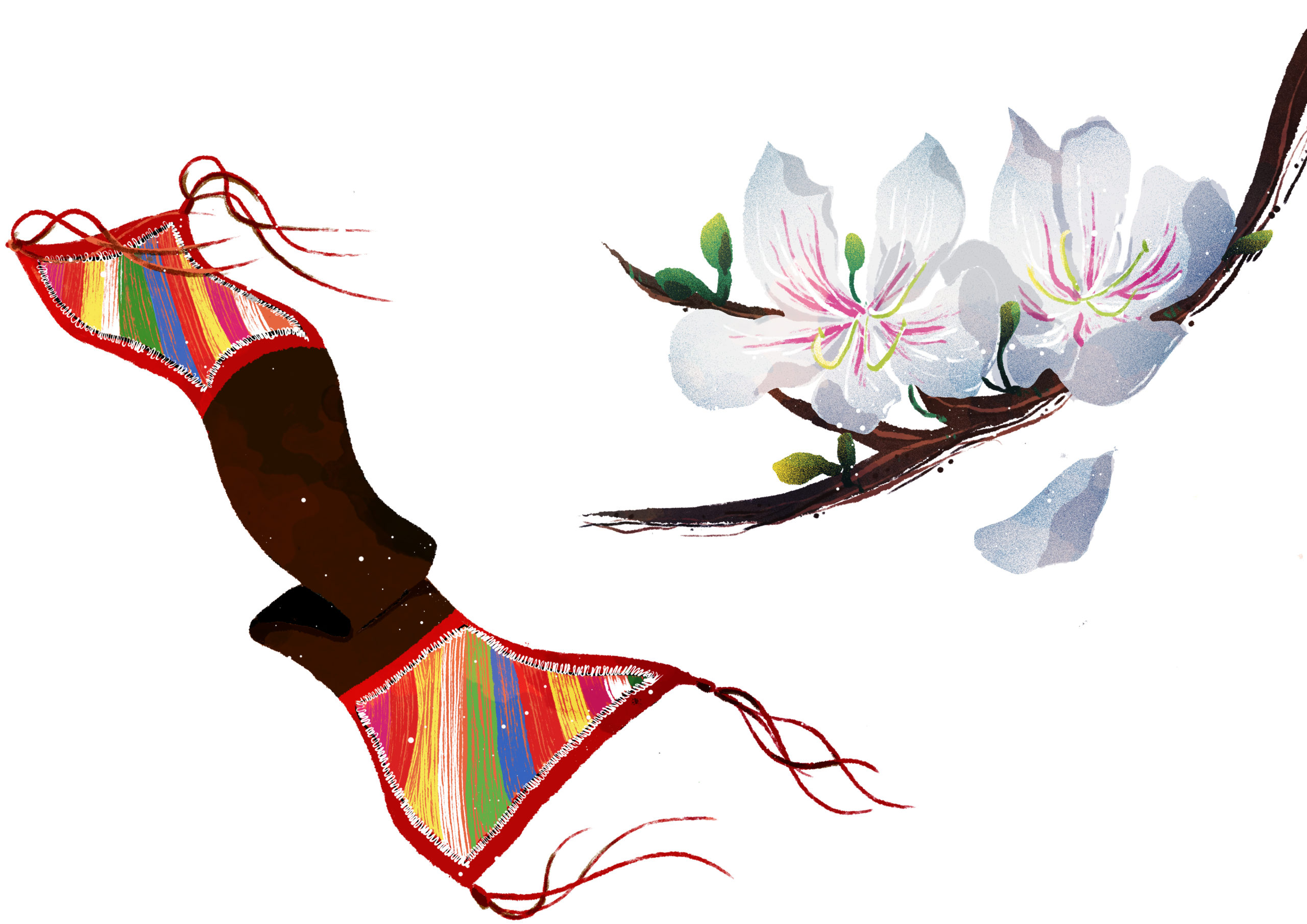 When he arrived home, Khum spied his lover’s Pieu headscarf tied to his stairs. Worried about what this might mean, he rushed out to find her. After asking in her village, he learned that Ban had run away. Seeking her through various villages with no trace, he grew exhausted and collapsed. After his death, Khum turned into a bird that lives alone in the forest and sings during the season of Ban blossoms, its cries like fervent calls for a long -lost lover.