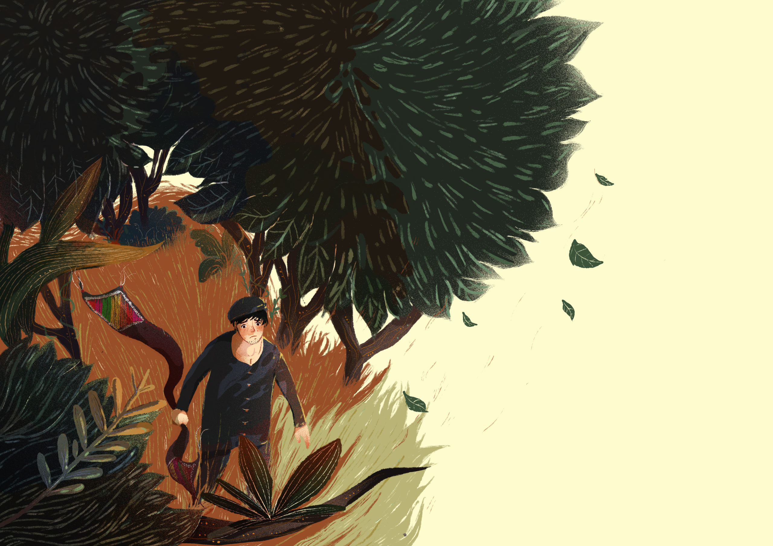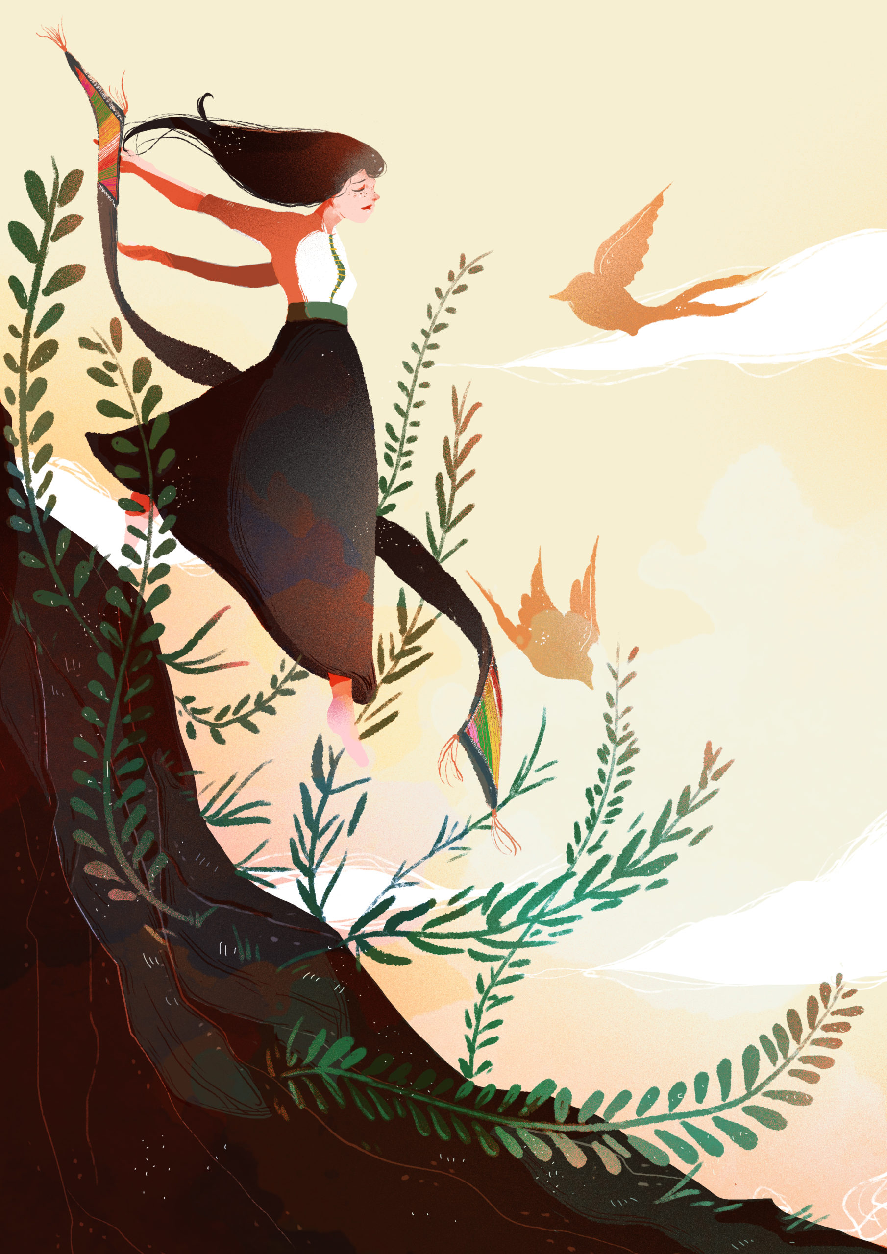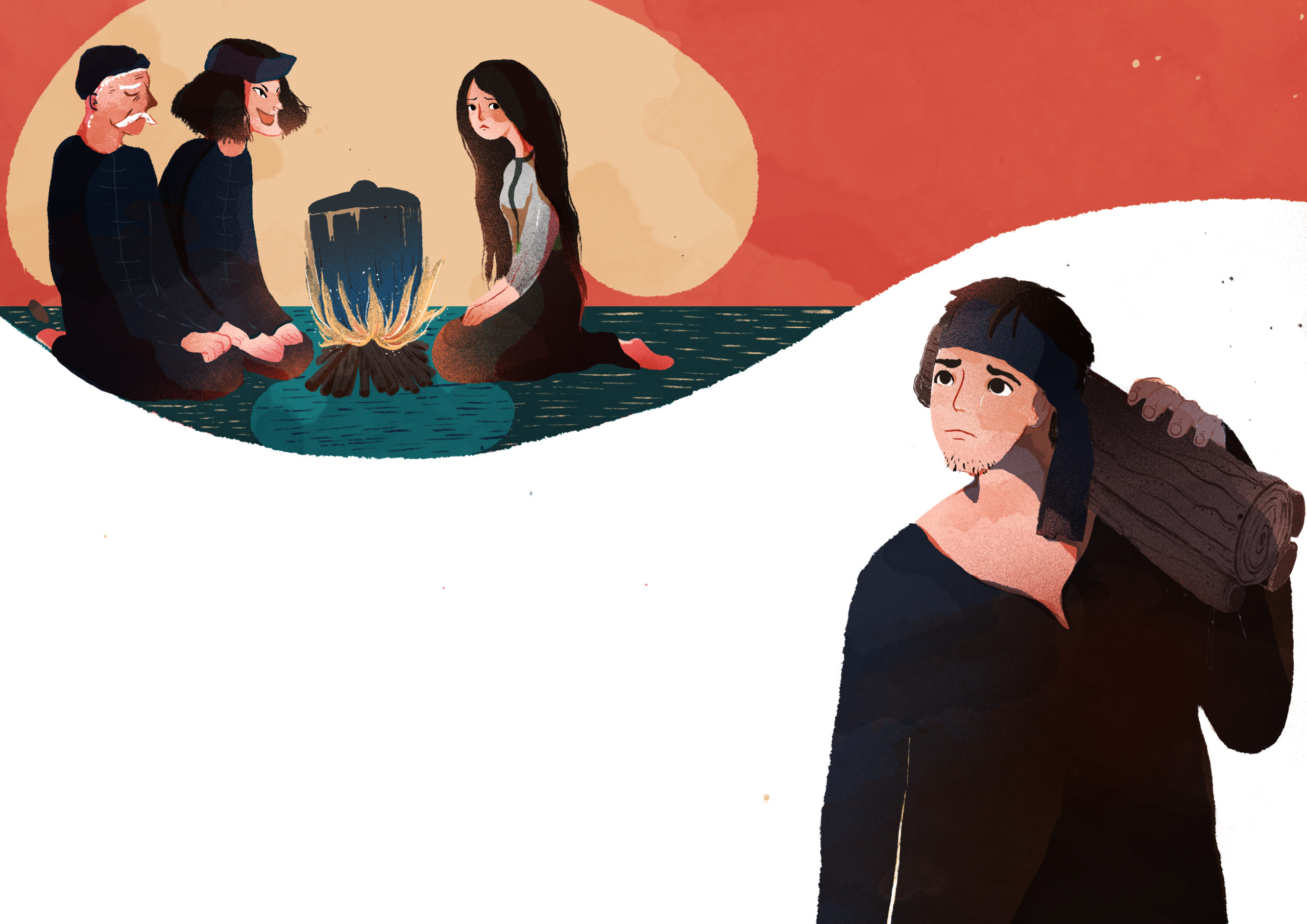 Despite his daughter’s protests, Ban’s father refused to break off the engagement. He even urged the Tao Muong family to hold the wedding as soon as possible. In desperation, Ban ran to Khum’s village, only to find that Khum was far away buying buffaloes. She removed her Pieu headscarf, tied it to his stairs, and dashed away to find her lover. She traveled through mountains and forests, and strained her voice calling for Khum, only to be met with silence.