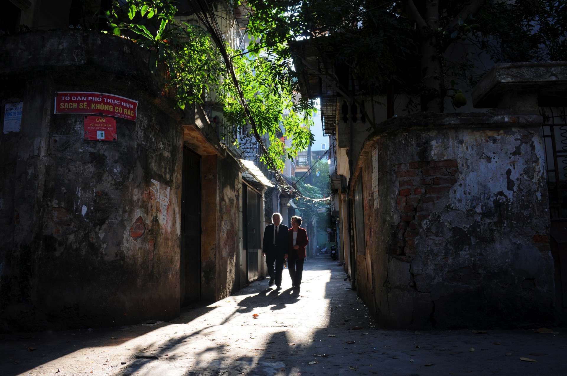 New Year’s morning in Hanoi is in deep contrast to the ambience of New Year’s Eve, when throngs of onlookers crowd Hoan Kiem Lake and other sites to watch fireworks. In the first moments of the New Year, the city is touched with a rare serenity and idleness.