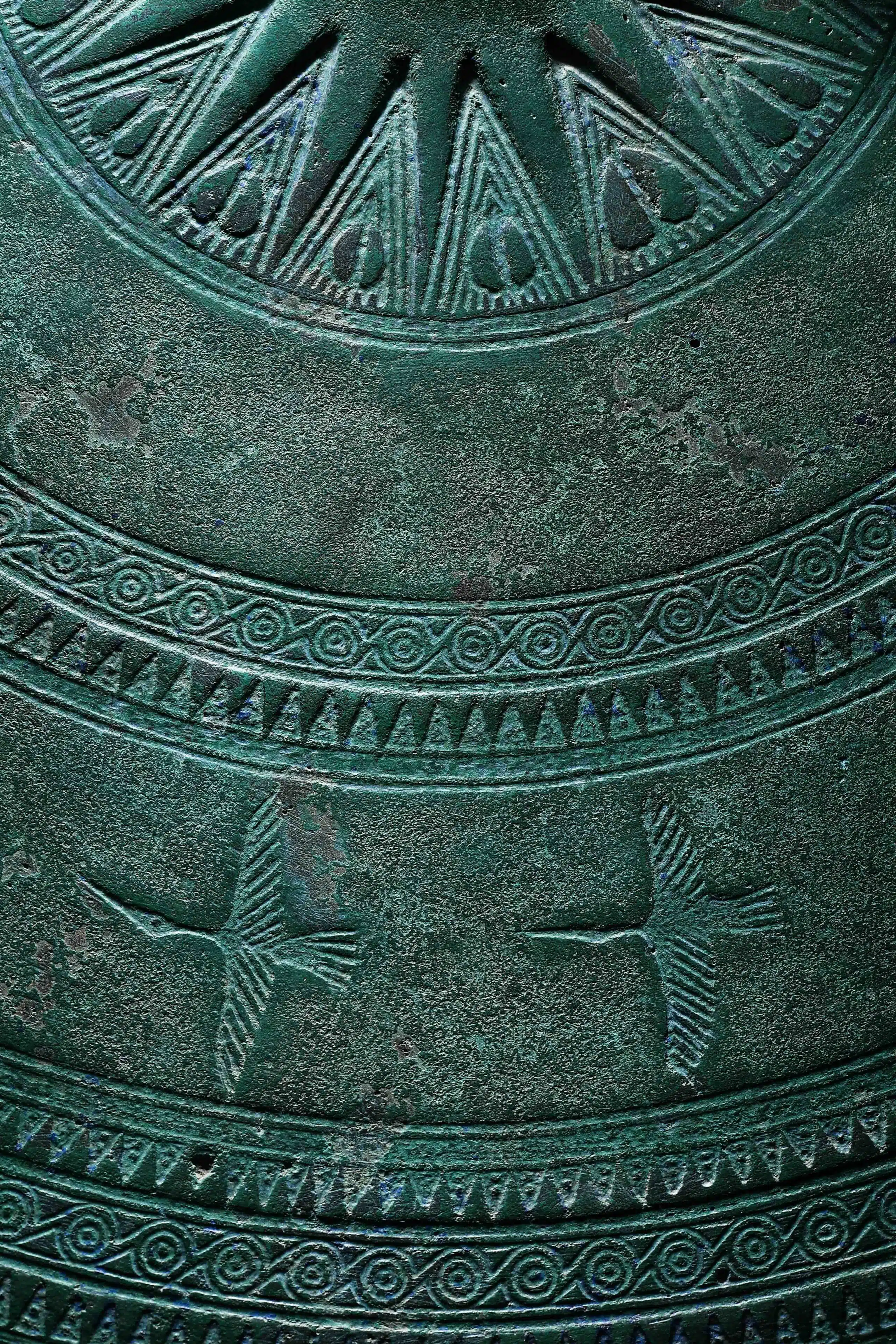 Over the decades, hundreds of Dong Son bronze drums have been discovered, reinforcing Dao Duy Anh’s theory. Many scientists agree that the birds with outstretched wings shown on the drums are Lac birds and the Totem of the Dong Son people. Even on later-era Dong Son drums, the ancients simplified many patterns but retained images of their Totem, sometimes depicting just four flying birds. The bird figures on these bronze drums can be interpreted as divine and the Totem of the ancient Vietnamese.