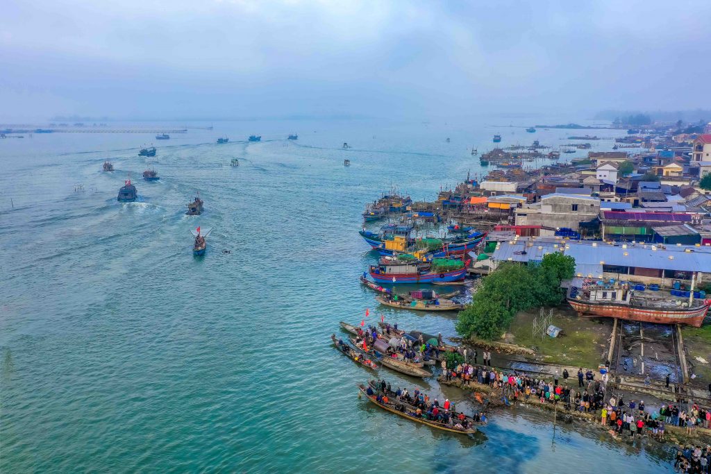 After the “sale”, the women and boat owners gather to distribute the proceeds. The performance ends, and some boats set out to sea for the fishing season, while the rest of the villagers gather at Tam Giang Lagoon to watch a fishing boat race.