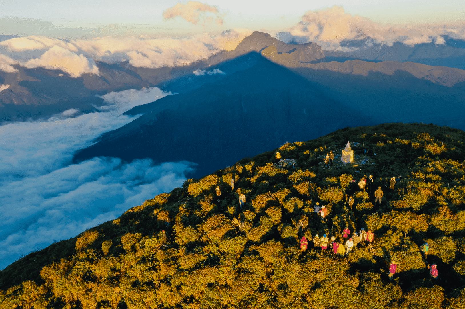 To reach the rooftop of Y Ty, we spent six hours climbing a distance of eight kilometers. Should you wish to see Mount Lao Than’s best clouds, start in the afternoon, stop to camp for the night, and wake up early the next morning to welcome the first rays of sun peeking through silvery clouds.