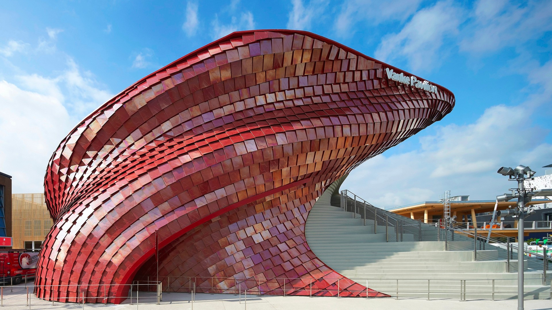 The Vanke Pavilion in Italy, designed by architect Daniel Libeskind, is a masterpiece of creativity, covered with 4,200 red porcelain stoneware tiles that gleam brilliantly in sunlight. The tiles used in this structure represent a fusion of tradition and modern technology. Known scientifically as “crystalline ceramic,” this material features a smooth, glossy surface that effectively captures and reflects light.