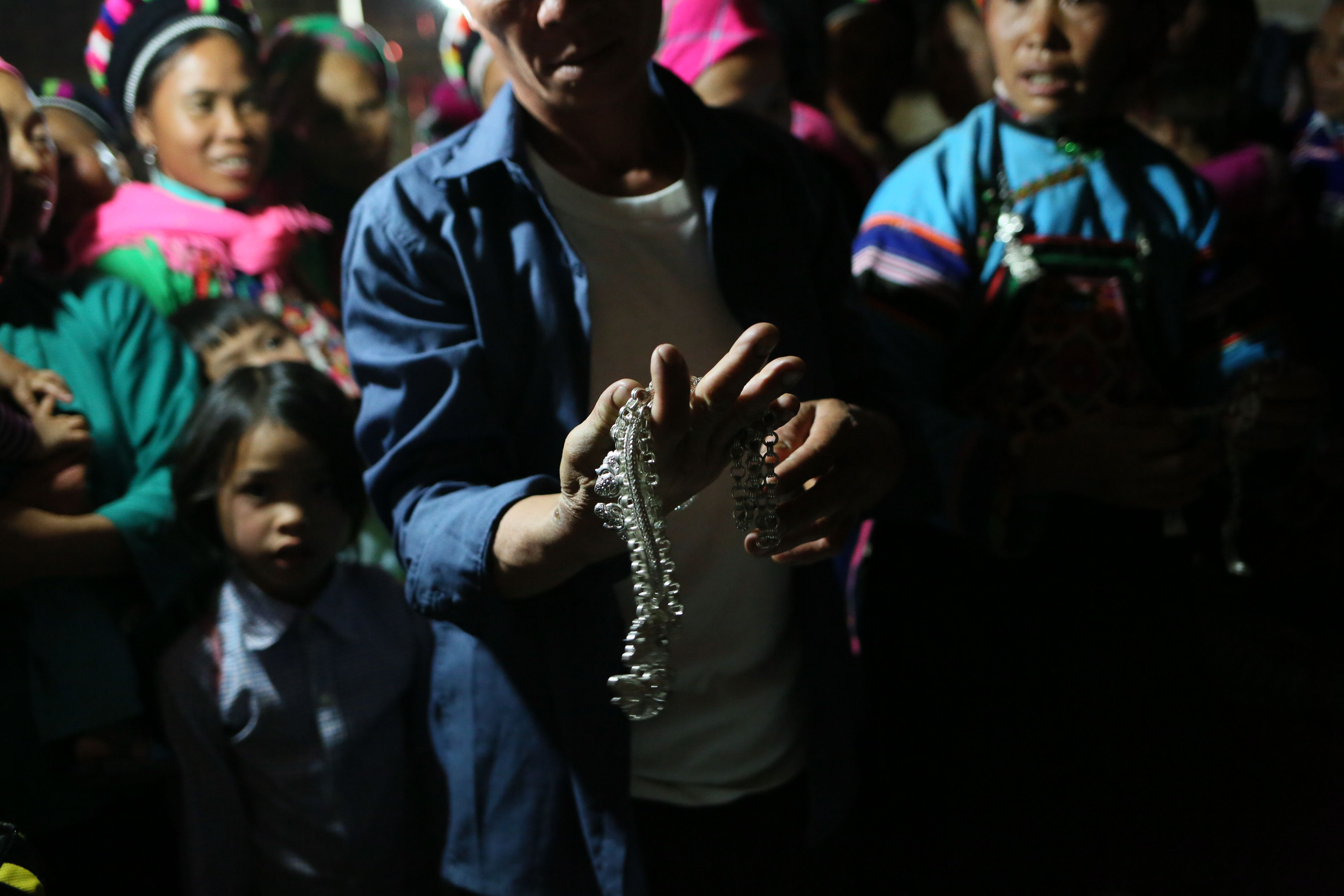For lowland inhabitants, paper crackers are meant to bring joy at a wedding. Meanwhile, Phu La people rejoice in the sounds of Pi Le horns on this important day. A Phu La wedding features two horns with a repertoire reserved for nuptials: one melody on the way to the bride’s family and upon reaching her home and another to take her out of the door and chaperone her to her new home. The horn melodies should stir strong emotions, either robust and vibrant or melancholy, like the bride’s feelings as she bids farewell to her family. En route to the bride’s family and when carrying her home, the horn blowers always lead the procession in order to clear the path so the bride can easily reach her new home.