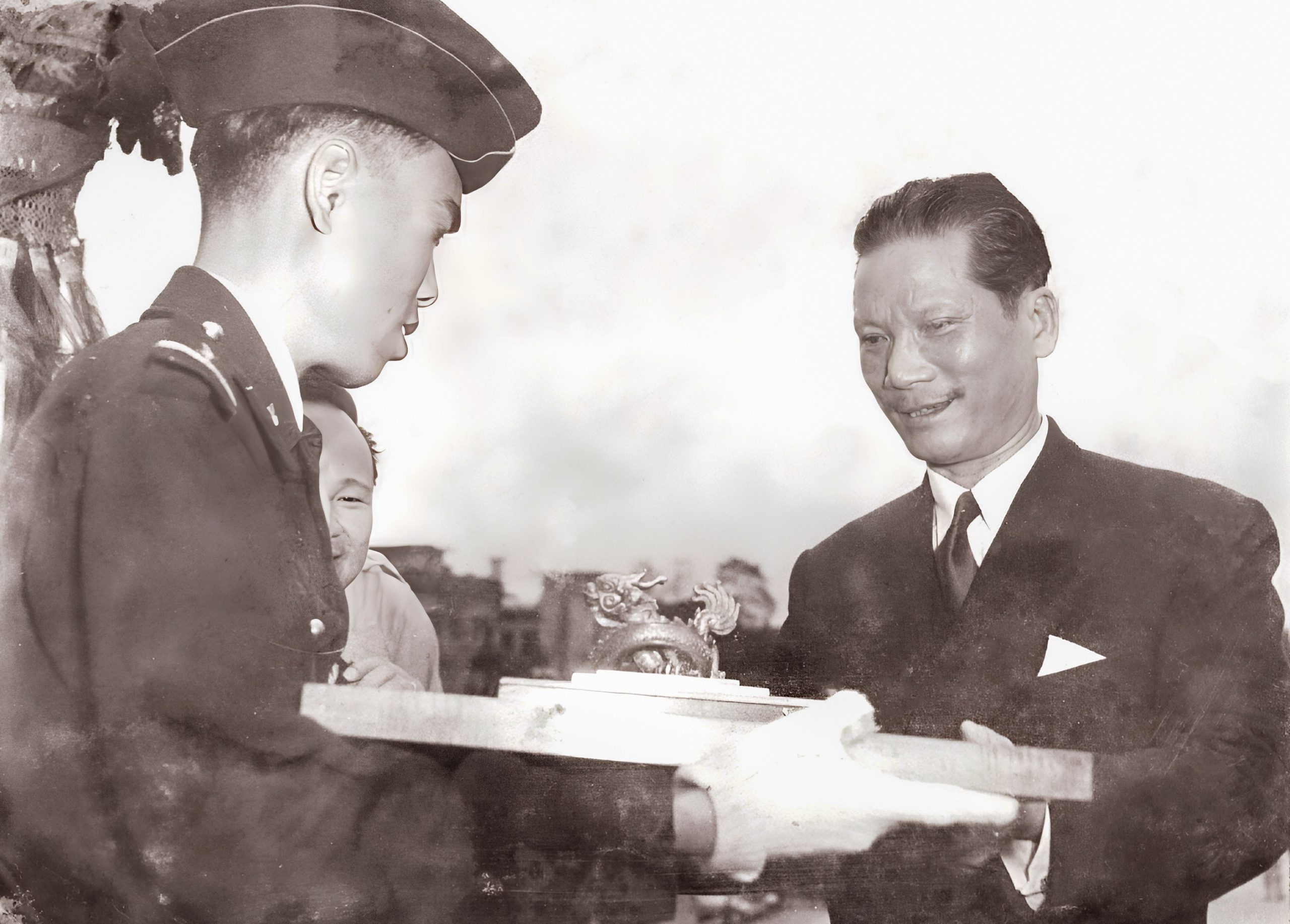 On the afternoon of August 30, 1945, on the platform of the second floor of Ngu Phung Pavilion, Ngo Mon Gate, in front of 200,000 people of Thua Thien Hue, whose revolutionary spirit was boiling in their blood, the last emperor of the Nguyen Dynasty handed over the sword and seal symbolizing imperial power to representatives of the Revolutionary Government. Those items were none other than the Treasure of the Emperor Seal and a sword created during Emperor Khai Dinh’s rule. On behalf of the Revolutionary Government, Mr. Tran Huy Lieu received the sword and the seal and affixed the citizen badge of the Democratic Republic of Vietnam to the former emperor. The following day, the sword and seal were transported to Hanoi to be present at the ceremony of independence on September 2, 1945. When the French returned to invade the Capital of Hanoi, the unit tasked with preserving the sword and seal hid these treasures in a house in Nghia Do near West Lake, before retreating to Viet Bac at the end of 1946. In an unfortunate turn of events, not long after, French soldiers raided Nghia Do village and discovered the sword and seal. On March 8, 1952, the French held a formal ceremony in Hanoi to hand over the sword and seal to Bao Dai, who at the time held the title of Chief-of-state.
