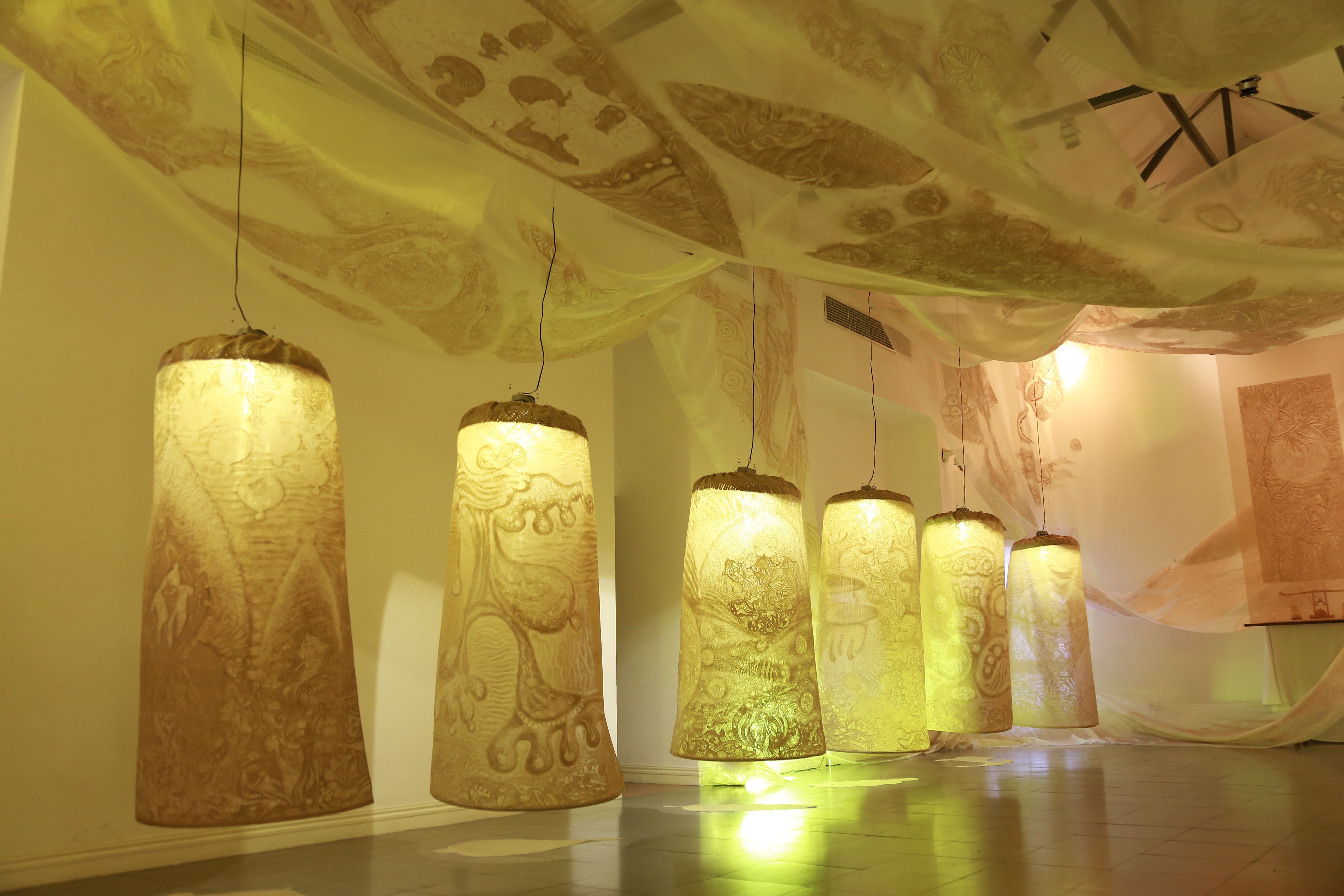 Truc chi allows for rich and complex means of expression. Subtle differences in thickness yield different effects, especially when interacting with light. The effects on the surface depend on the light source. With front lighting, thick parts appear bright in the shade while thinner parts appear darker. Backlighting yields the oppo ite effect: thicker parts will be darker whereas thinner parts will appear lighter. This flexibility attracts and inspires both audiences and artists.