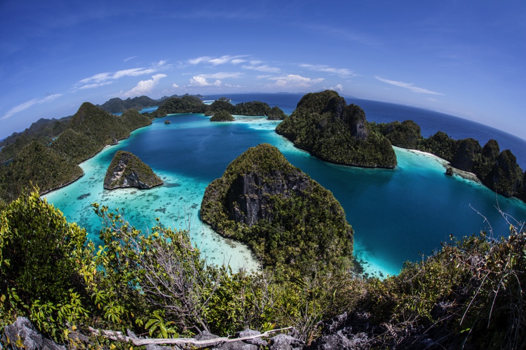 Raja Ampat is a dream destination for divers, with 70 percent of the world’s coral reefs concentrated here. Visitors can kayak to explore countless islands, venture into caves, hike through lush jungles, fish, or simply relax on the velvety white sand beaches. It’s also possible to swim with sharks, manta rays and sea turtles.