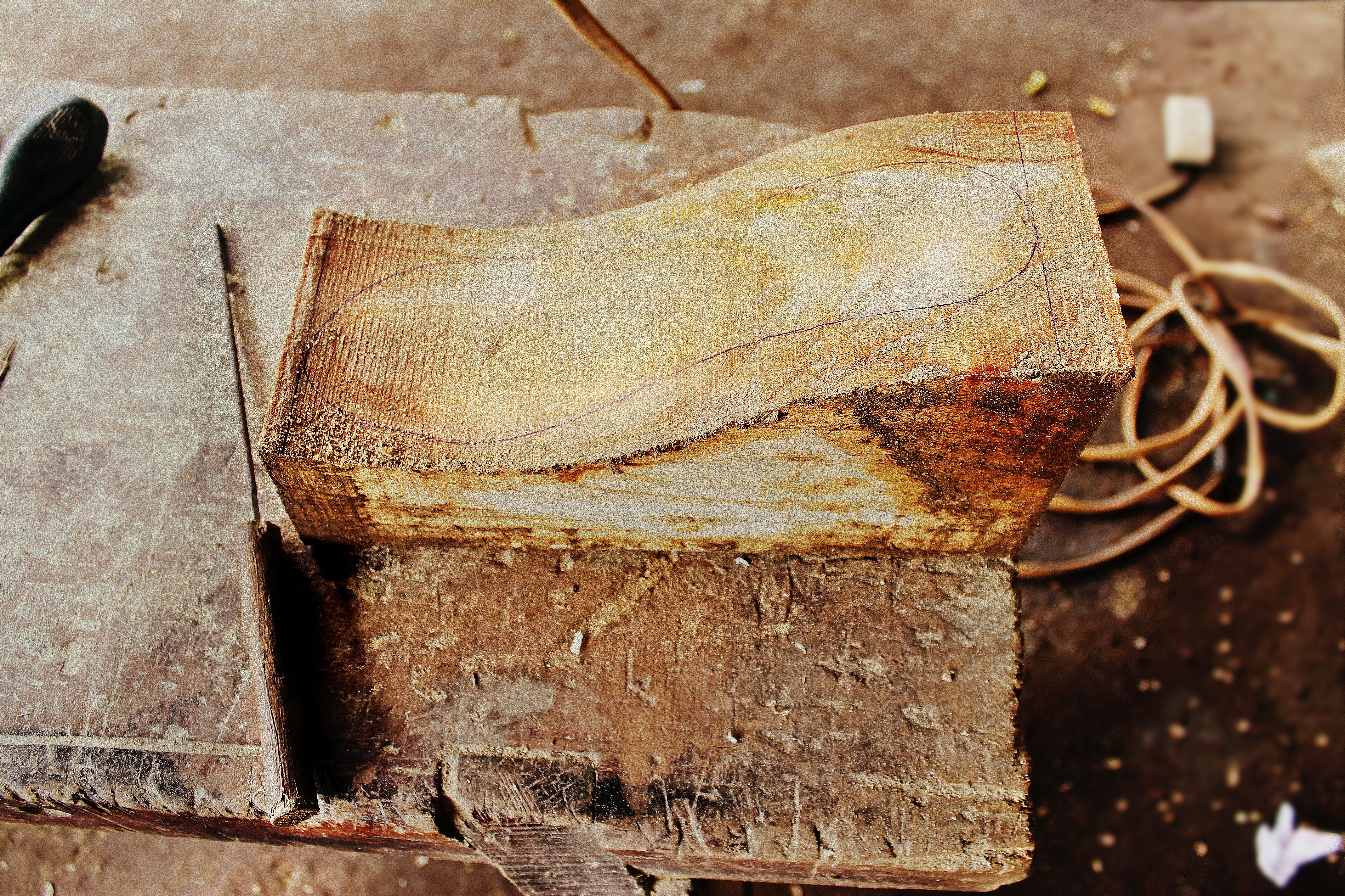 images are handcrafted by woodcarvers in Hue. Often when designing a pair of shoes, designers will work on an original idea, then order the woodcarvers for the finished product, but in the manufacturing process of these special wooden shoes, the artisan will work directly with the designer from the conception of the idea until the finished product.