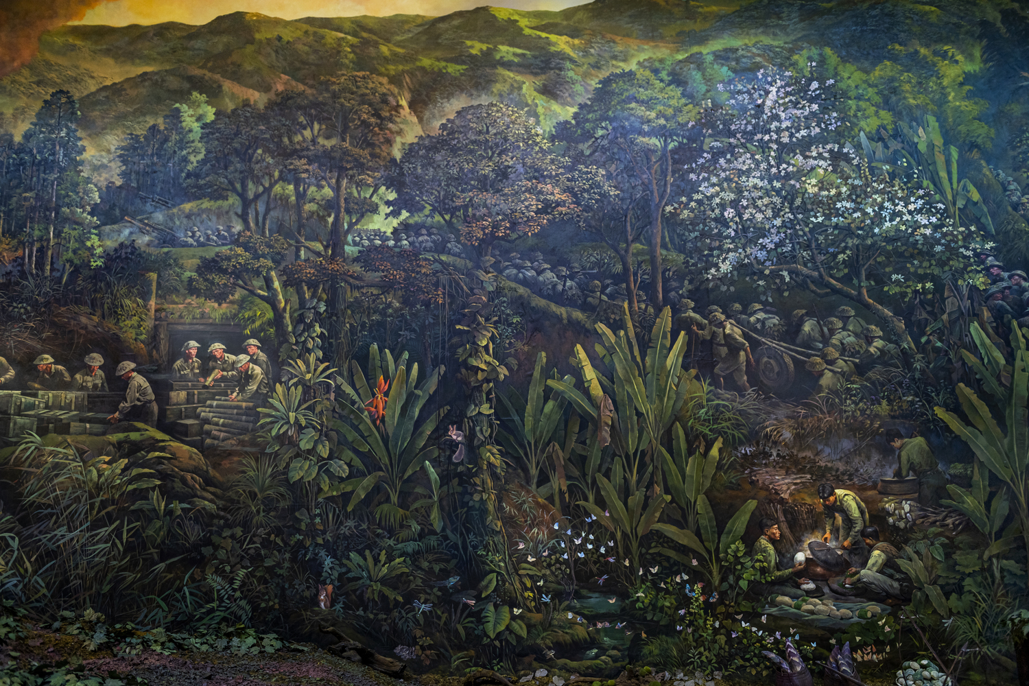 According to Mr. Nguyen Van Mac, “No character is the same as any other, from French soldiers to porters, from carts to every piece of land, tree, and blade of grass…” “The Dien Bien Phu Campaign” is the result of a painstaking production process. The implementation team researched a vast amount of data. The work’s creators took many field trips, examined thousands of photos, read countless books, and met many witnesses before they were able to produce a complete sketch.