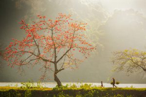 In Ha Tien, I greet the new day in a city park by the banks of the Dong Ho Lake. The early morning breeze gently ripples the water’s surface, while the peaks of the To Chau Hills remain veiled in darkness, standing starkly against the dawn sky. The first rays of sun from behind To Chau splash across the sky, illuminating the white clouds against the sky’s blue canvas and crafting a portrait of nature’s tranquility.