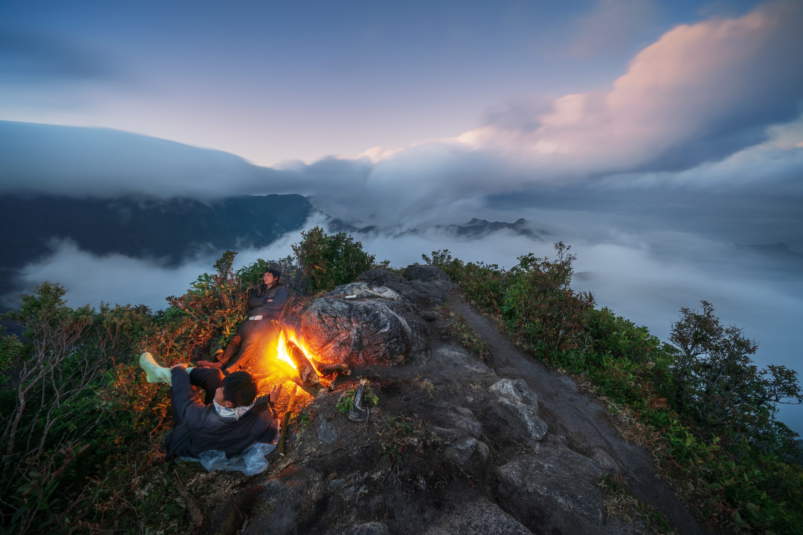 The prime time to ascend Ky Quan San begins in September, when the climate is mild, the sun is gentle, and rainfall is scarce. The cooler months that follow are ideal for “cloud hunting.” This is also the season when maple leaves turn vibrant red throughout the forest, and green moss thrives on ancient trees and boulders, nourished by the humid winter fog. By March, the forest bursts into the vivid hues of blooming rhododendrons, with temperatures remaining moderate thanks to the final gusts of cold northern wind before the onset of summer.