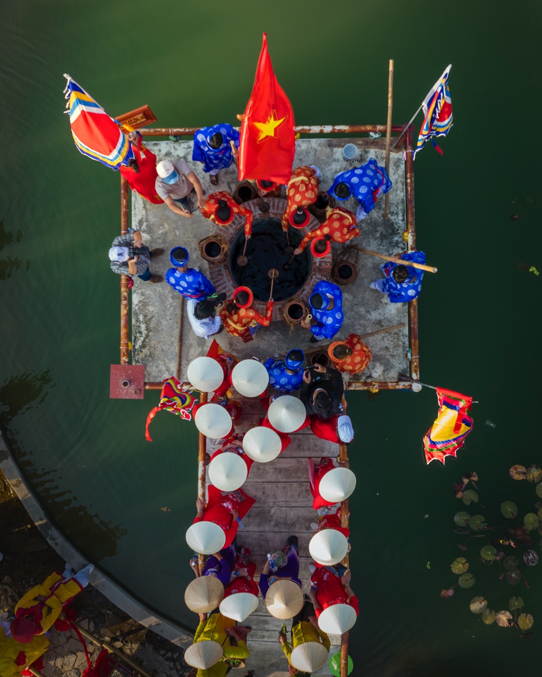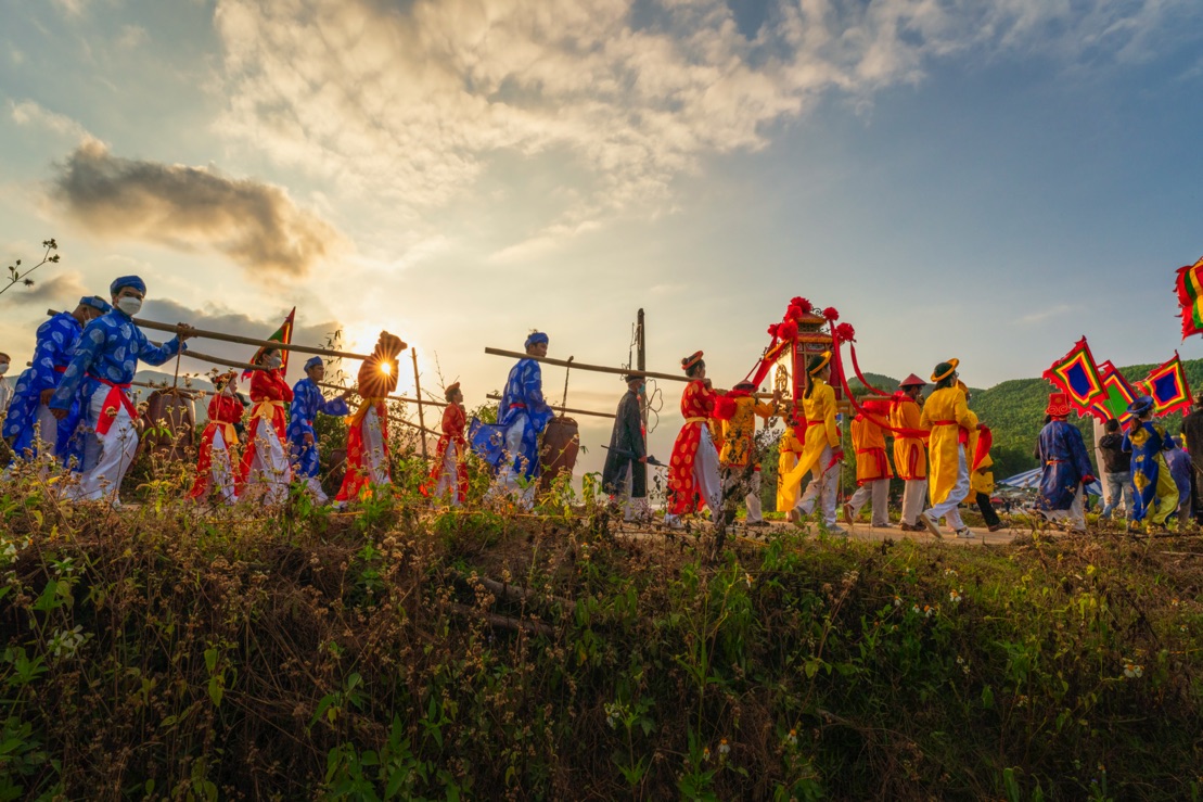 During the festival, large numbers of residents gather at the temple of Lady Thu Bon to make offerings. They are employed in various occupations, such as trading, farming, and fishing. Owners of fishing boats on the Thu Bon River, in particular