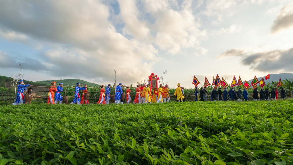 The province of Quang Nam is geologically and culturally divided into sub-regions with distinct characteristics, including mountains, hills (midlands), deltas, coastal areas, islands, and archipelagos. Nevertheless, the boundaries become blurred due to the deep and wide rivers that run from west to east. The Thu Bon is one such river. Each year, communities living along its banks hold several festivals, including the Ba Thu Bon (Lady Thu Bon) Festival, celebrated on the 11 th and 12 th days of the second lunar month by the residents of Thu Bon Dong Village in Duy Tan Commune, Duy Xuyen District.