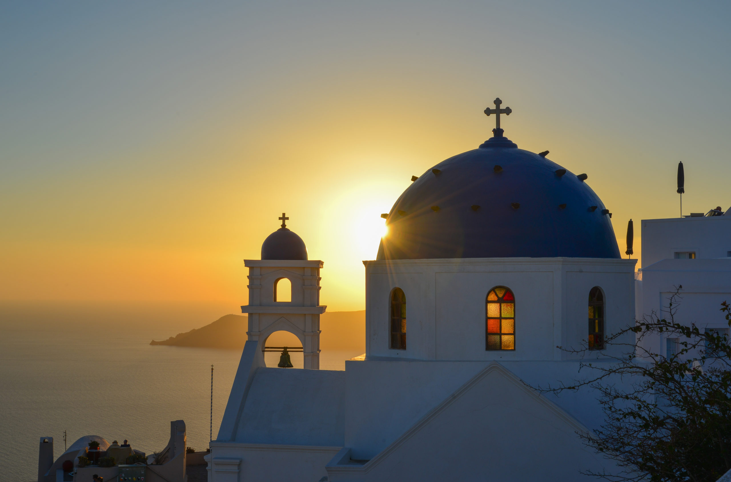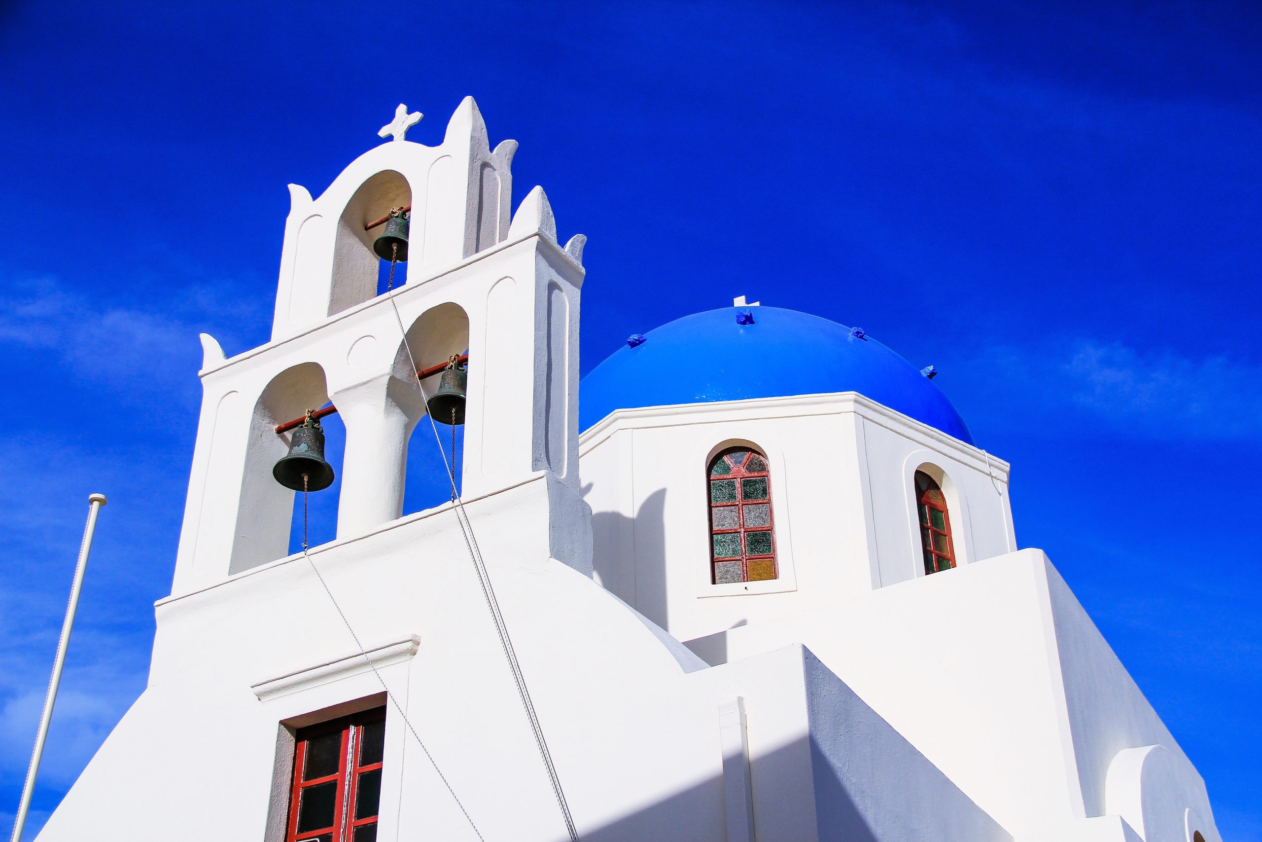 Dạo bước quanh con đường dọc theo vách núi, hiện ra trước mắt tôi là những nhà thờ với mái vòm xanh độc đáo. Hòn đảo thiên đường Santorini có tới hơn 250 nhà thờ. Người dân Santorini rất sùng đạo, có lẽ đó là lý do các du khách tới đây đều cảm nhận được sự chân thành, thật thà, giản đơn và hiếu khách tại “thiên đường nơi hạ giới” này.