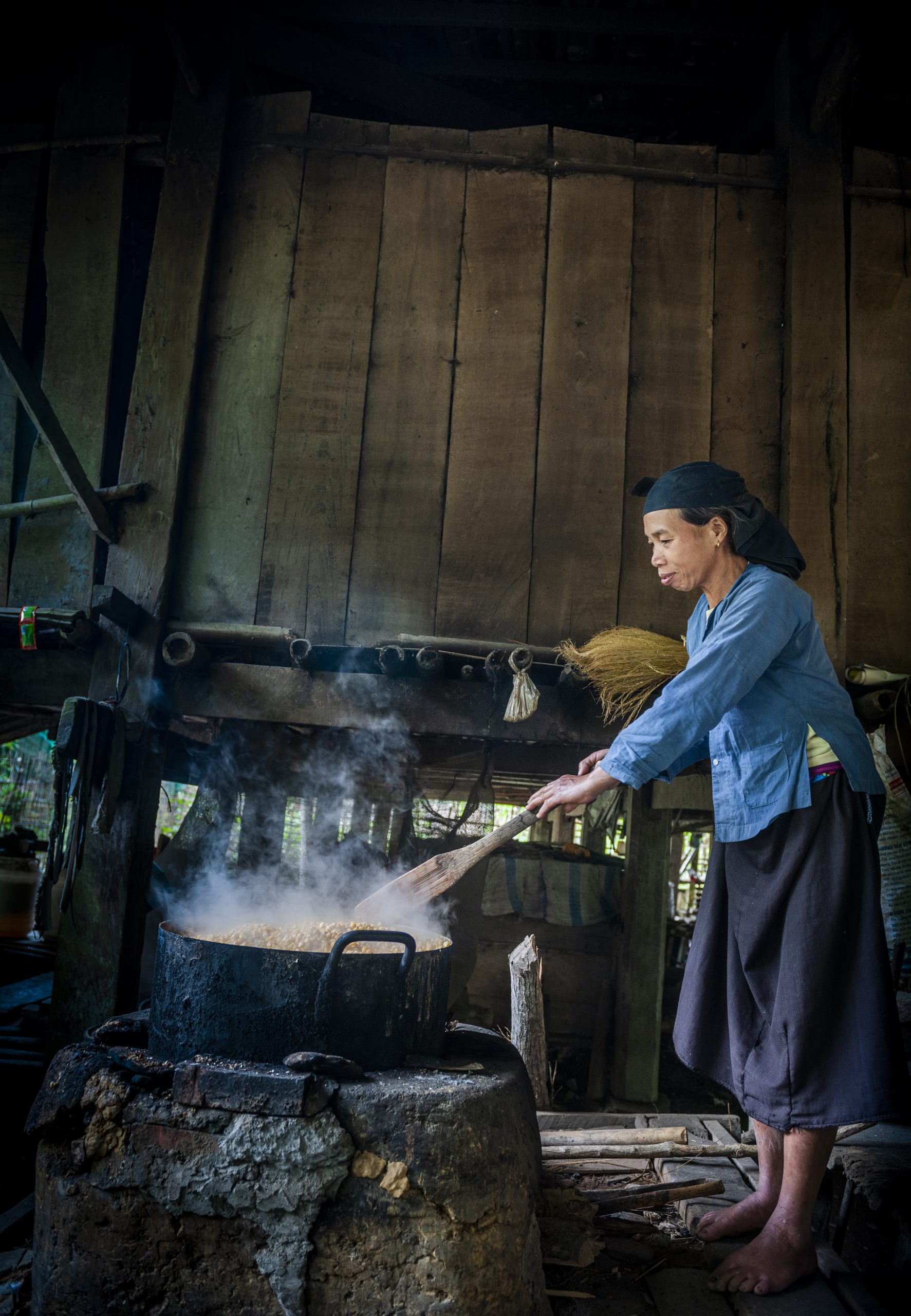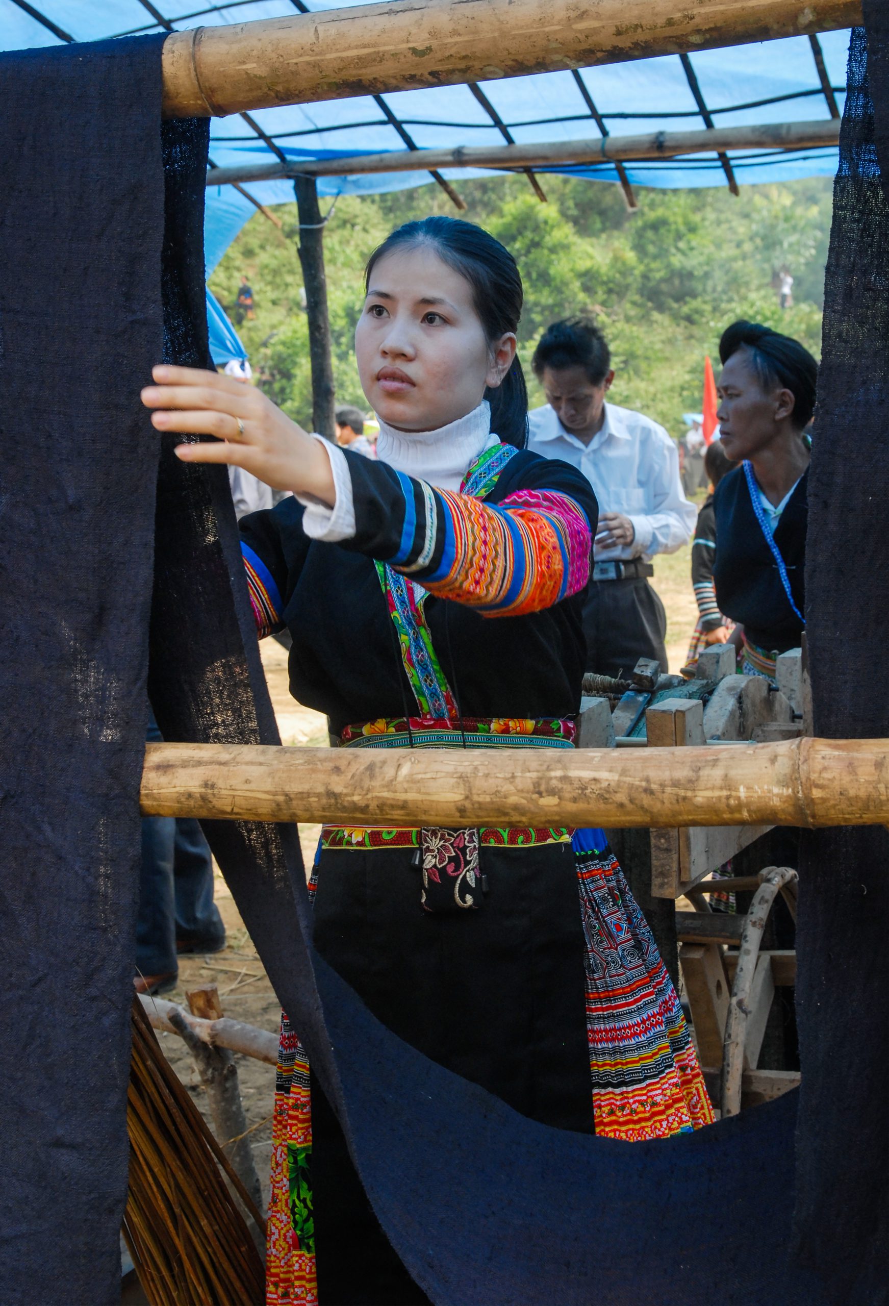 Màu chàm được lấy làm màu chính của trang phục dân tộc Tày, Nùng, Thái, H’Mông, Dao và một số dân tộc miền núi phía Bắc Việt Nam, cũng như một số dân tộc ở miền Trung. Quá trình nhuộm vải đòi hỏi nhiều thời gian tính từ lúc thu hoạch nguyên liệu. Cây chàm có dạng cây bụi cao, được trồng vào tháng 3 âm lịch, thu hoạch sau ba tháng khi cây cao chừng 1m. Cành lá cắt về được ngâm trong bể hay chum nước 10 – 15 ngày, khi nước có màu xanh thì vớt ra, dùng vôi bột pha vào và khuấy cho đến khi bột chàm lắng ở đáy bể, lấy ra đựng vào sọt cho ráo nước. Một tháng sau, công đoạn pha chế nước nhuộm được tiến hành. Người thợ nhuộm dùng nồi đun nước nhiều loại lá có tinh dầu thơm hòa với bột chàm và ủ trong 2 – 3 ngày. Lúc này, nước đã có màu xanh đậm và có thể dùng nhuộm vải. Vải nhuộm được dệt từ sợi bông, được làm ướt và nhúng vào nước chàm 2 – 3 lần trong nhiều ngày, cho đến khi màu ngấm đều và có độ đậm nhạt tùy ý muốn. Như vậy phải mất nửa năm mới có thể có một tấm vải nhuộm chàm mới.