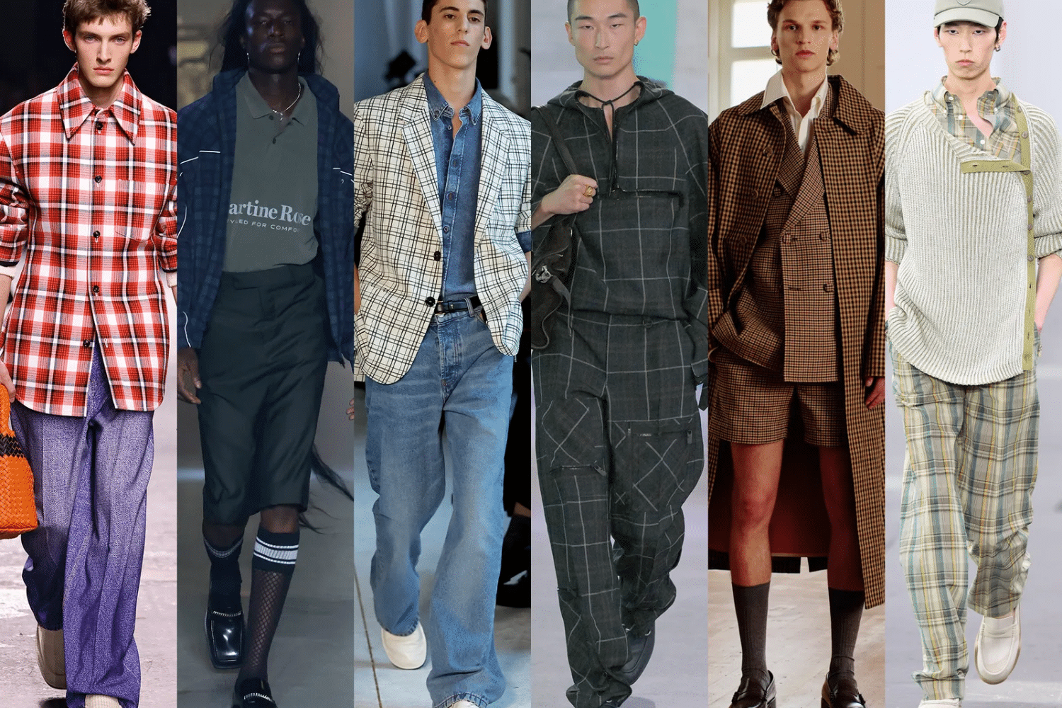 Tạm gác lại xu hướng “quiet luxury”, hè năm nay là thời điểm để họa tiết plaid (kẻ caro) lên ngôi. Burberry vẫn trung thành với họa tiết truyền thống nhưng biến tấu qua những chiếc cargo pants hay áo khoác có mũ. Trong khi đó, Bottega Veneta và Martine Rose mang đến những chiếc sơ mi oversize mang hơi hướng lumberjack.