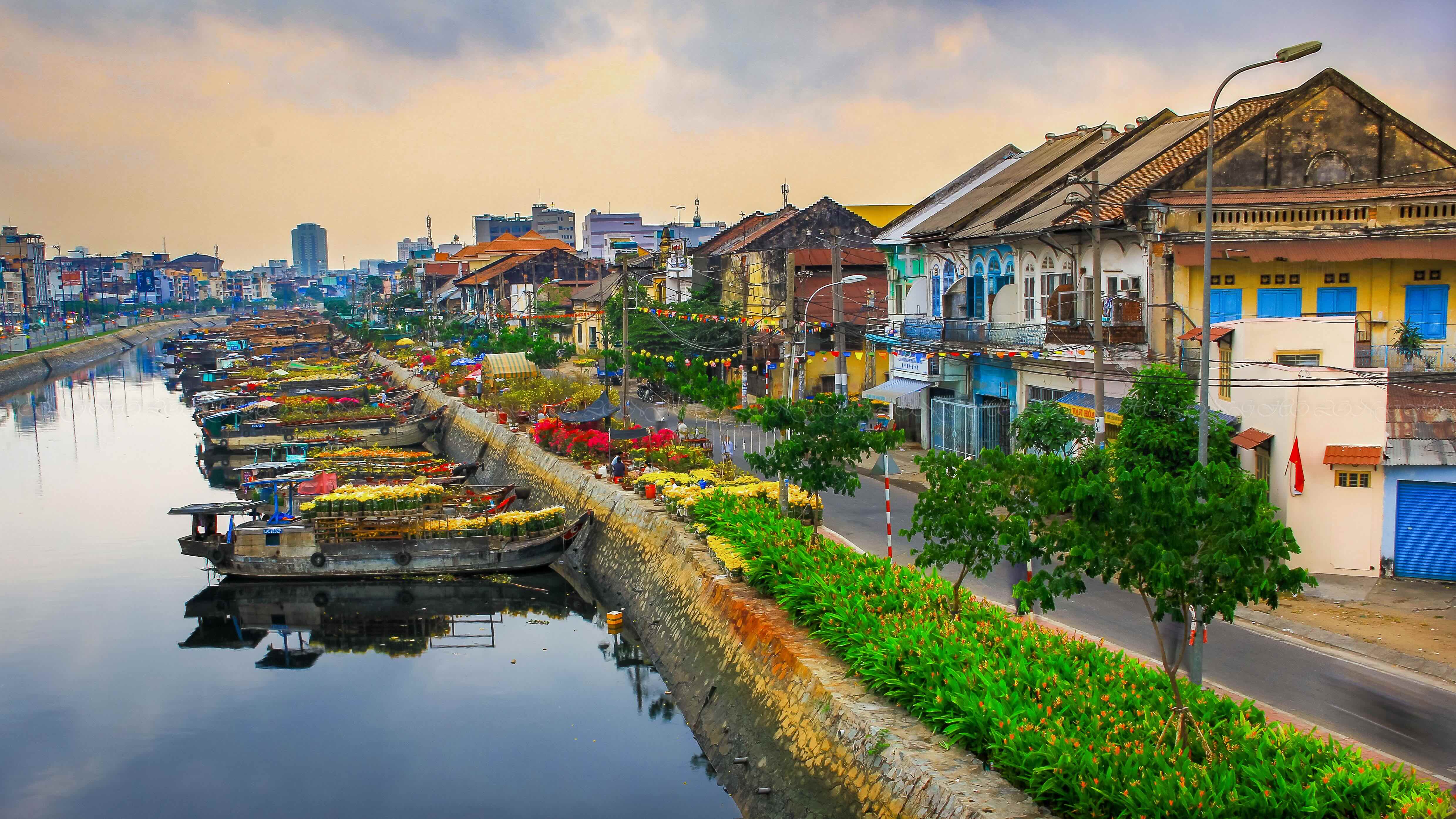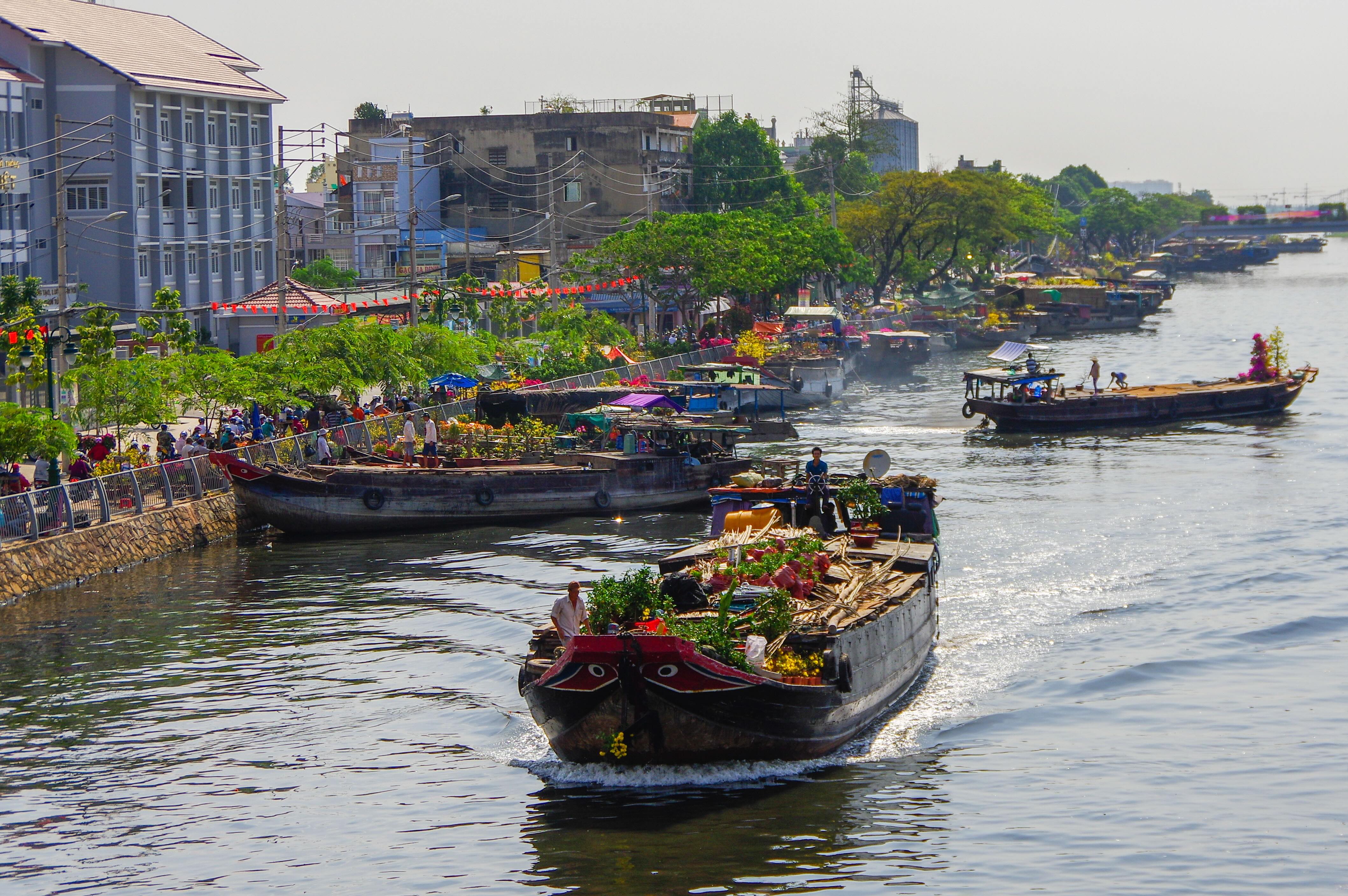 Điểm cuối của hành trình vạn dặm ấy thường là những bến sông đô hội, mà tiêu biểu nhất chính là Bến Bình Đông (phường Bình Đông, TP.HCM). Khi mũi ghe chạm vào bờ kè kênh Tàu Hủ, cũng là lúc mùa xuân chính thức “cập bến” Sài Gòn.