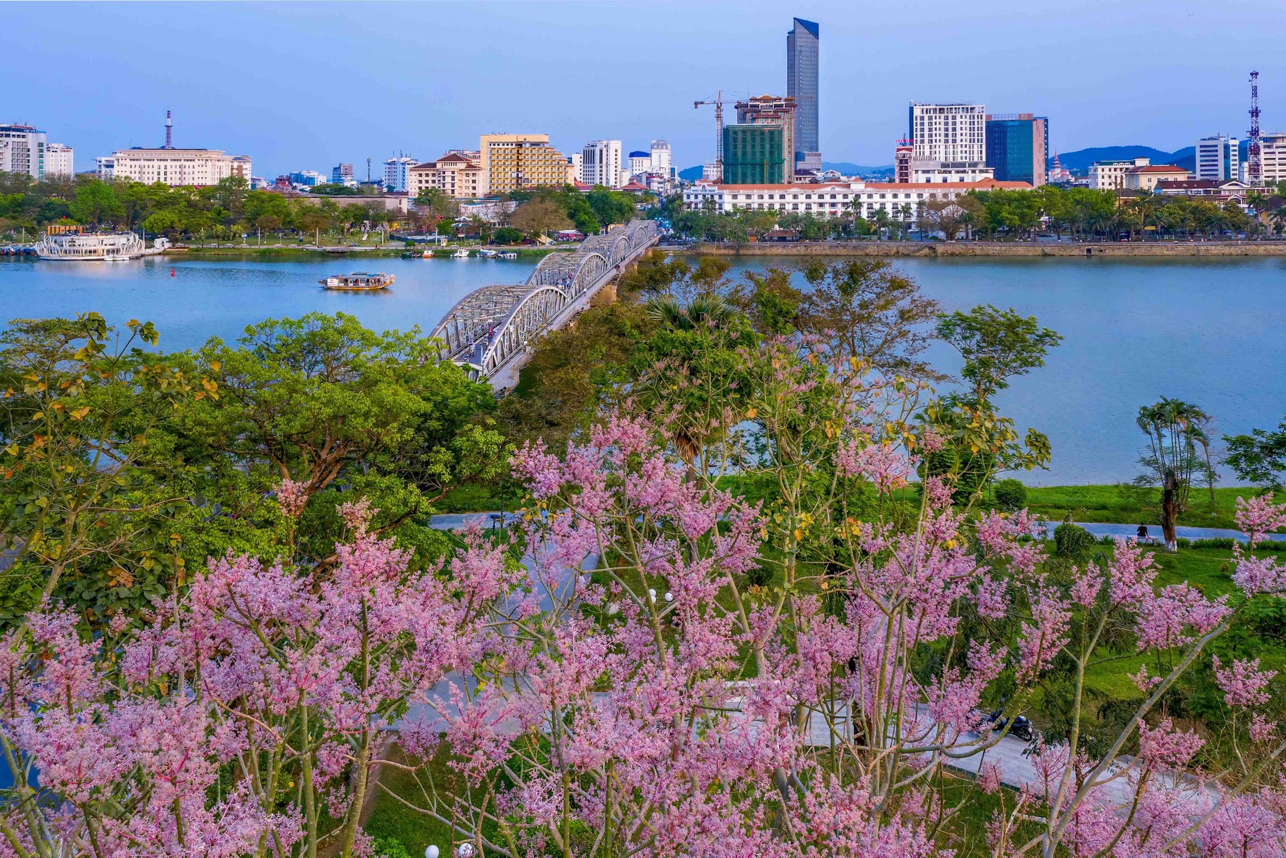 Huế vào tháng 3, khi những nhánh hoa ngô đồng bắt đầu điểm hồng trên những ngọn cây, ngô đồng thực sự lộng lẫy và kiêu sa. Lúc này, lá trên cây rụng hết nhường chỗ cho hoa ngô đồng khoe sắc thì cũng là lúc tất cả các cây ngô đồng khắp nơi đều đồng loạt trổ hoa tạo thành những tán màu lung linh rực rỡ, lặng lẽ nghiêng mình xuống các mái lầu duyên dáng, những cung điện nguy nga… tạo nên một khung cảnh huyền hoặc tuyệt vời.