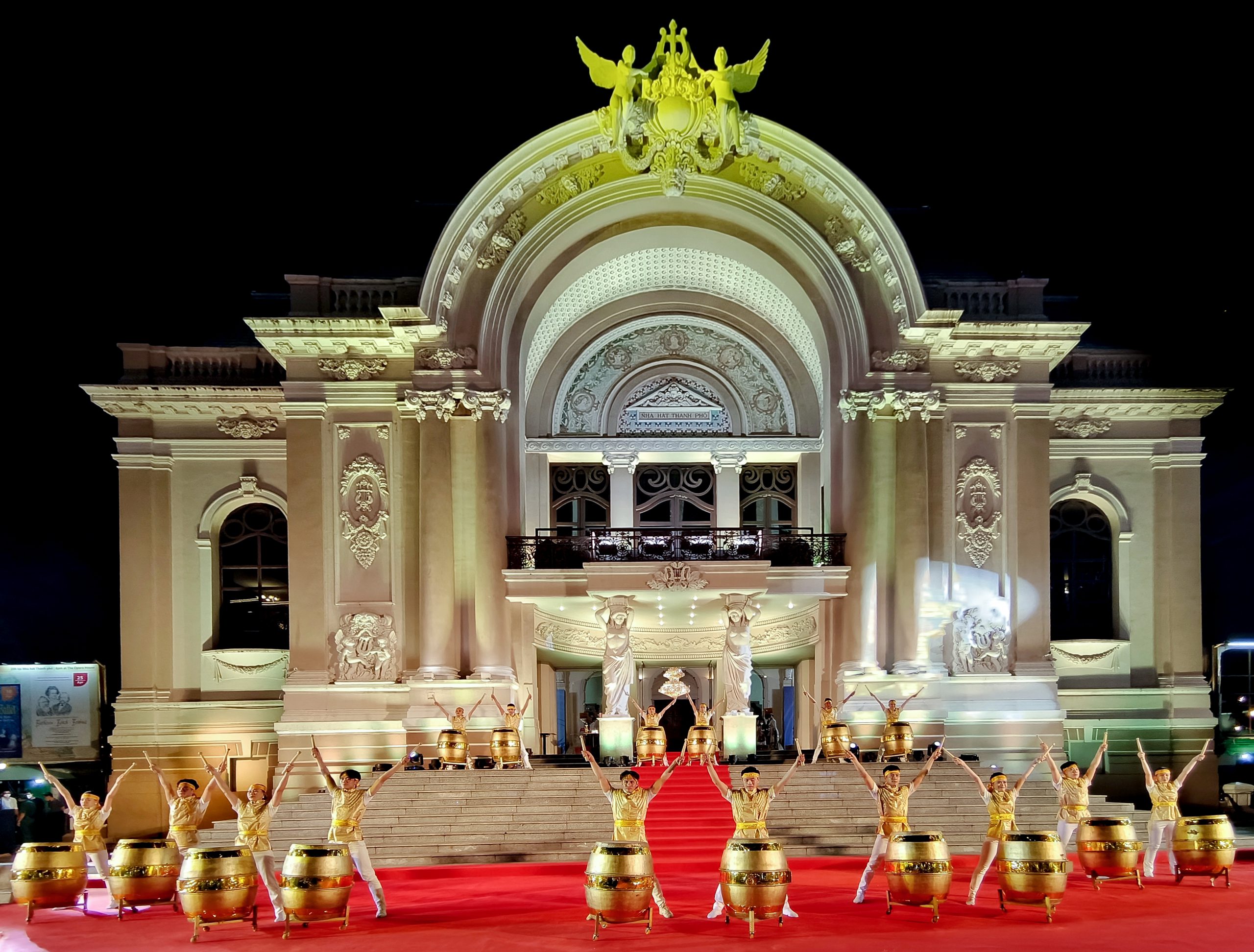 Lịch trình khởi hành bắt đầu từ Nhà hát Thành phố được xây dựng năm 1898 mang phong cách gothic. Ngày nay, đây là nơi biểu diễn các vở opera, ballet, giao hưởng hoặc các show nghệ thuật nổi tiếng. Những đêm có sự kiện, nhà hát lên đèn lộng lẫy từ bên trong ra bên ngoài. Các ngày khác thì khoảng sân trước nhà hát trở thành địa điểm chụp hình được nhiều bạn trẻ lựa chọn vì không gian rộng và thoáng, góc nào lên hình cũng đẹp. Gần đó còn có những tòa nhà cổ kính được chăm chút, trang trí theo mùa như bên trái là khách sạn Caravelle tồn tại hơn 60 năm, bên phải là khách sạn lâu đời nhất Việt Nam – khách sạn Continental. Ngồi bên những bậc thềm đá trước cửa nhà hát được thắp sáng, có thể ngắm dòng người, xe từ đường Đồng Khởi chạy ngang qua. Từ bậc thềm ra đến đường chỉ cách một khoảng sân nhưng vừa đủ để tiếng ồn của xe cộ không quá phiền.