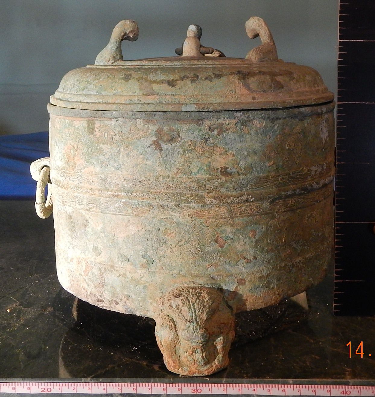 Trong Văn hóa Đông Sơn, những tượng cừu đã xuất hiện trên đồ đồng lễ nghi thế kỷ 1 TCN. Cũng khoảng này, cách tính thời gian theo lối Can, Chi với 12 con giáp, trong đó có Mùi – Dê đã được khắc trên gương đồng tìm thấy ở Giao Chỉ. Tượng cừu trên đồ đồng lễ nghi xuất hiện nhiều nhất là trên các nắp đồ đựng bằng đồng ở các gia tộc Giao Chỉ quyền quý. Đáng chú ý nhất là trường hợp một chiếc hộp vuông thân phủ đầy hoa văn khắc vạch hàng trăm hình mô típ đuôi công. Trên nắp hộp là bốn tượng cừu ở bốn góc. Tất cả đều nằm bình thản quay mặt vào phía trong. Đây là chiếc hộp trấn yểm của một shaman quý tộc có thể có liên quan mật thiết đến các thủ lĩnh Lạc Việt trong khởi nghĩa Hai Bà Trưng.