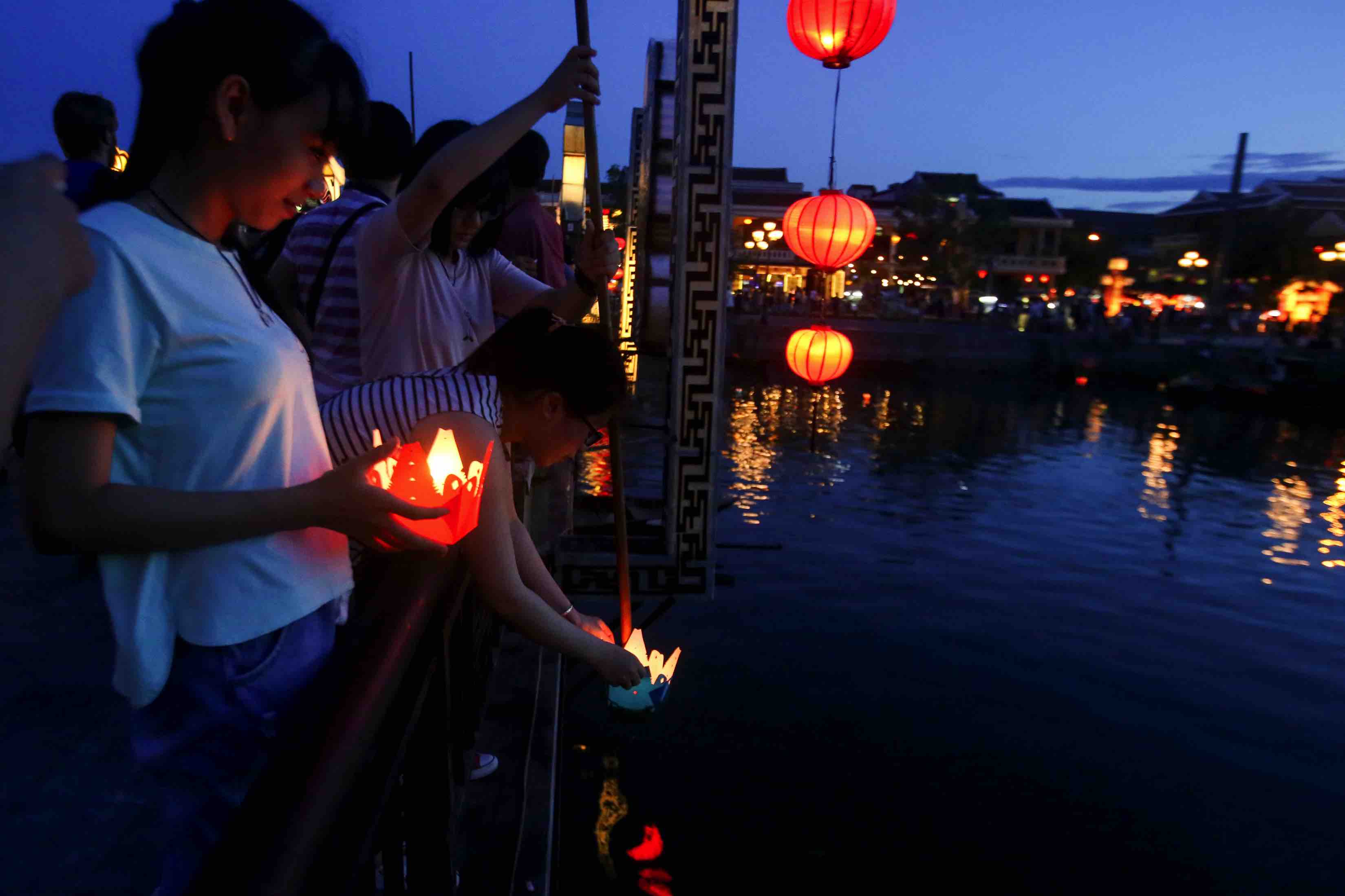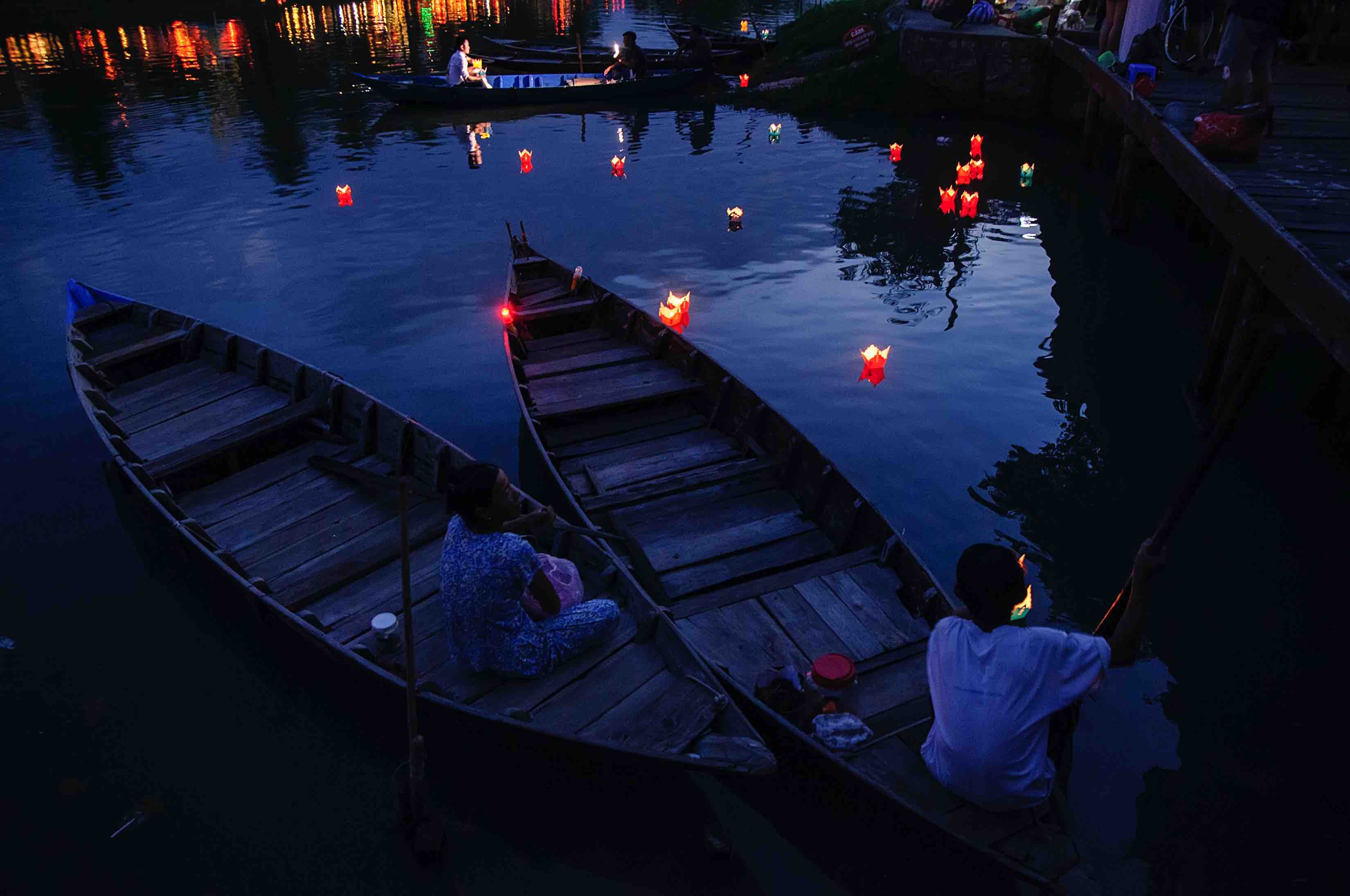 Nếu Hội An của những sớm mai là bức tường rêu xanh, những quang gánh các bà các mẹ với tiếng rao chè đậu ván nước đá thì đèn lồng và những cánh hoa đăng dập dìu trên sông Hoài là hình ảnh mà bạn chẳng nên bỏ qua khi thăm chốn xưa cũ này. Đặc biệt, vào những ngày rằm và mồng một, phố cổ Hội An sẽ tắt đèn. Dọc hai bên sông Hoài nhộn nhịp các sạp bán hoa đăng, người bán người mua chẳng bao giờ mặc cả cho những cánh hoa đẹp đẽ, sẵn sàng thắp sáng, đưa du khách về với một phố Hội xa xưa.