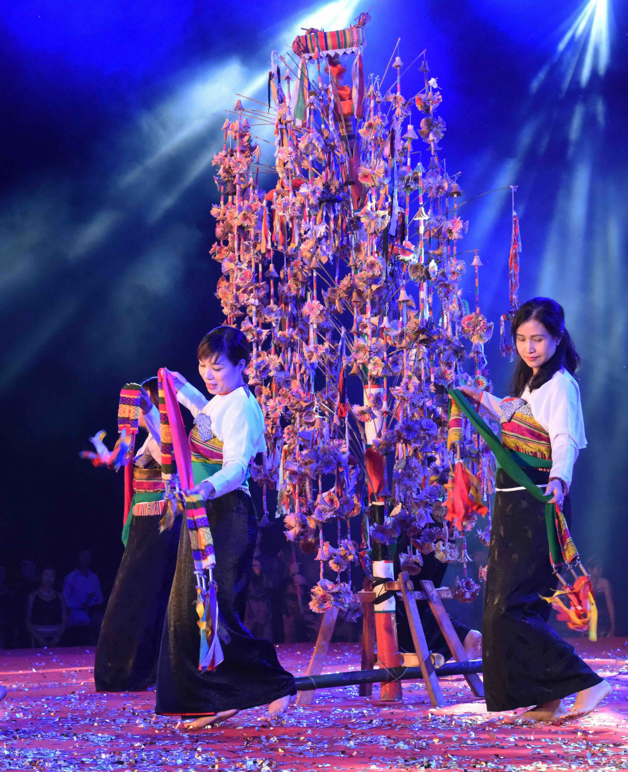 Là một di sản gắn với nghệ thuật diễn xướng, sinh hoạt lễ hội, đời sống tâm linh của dân tộc Thái, Mường, nên cây nêu và đặc biệt là cây bông luôn được trân trọng. Như tên gọi, cây luôn “nở hoa” rực rỡ dưới bàn tay khéo léo của các nghệ nhân, làm đẹp cho bản làng vào dịp xuân mới. Lễ hội hát múa ăn mừng dưới cây bông (Kin Chiêng Booc Mạy) là lễ hội truyền thống đặc sắc của đồng bào Thái trắng, đã được đưa vào danh mục Di sản Văn hóa phi vật thể Quốc gia. Lễ hội diễn ra vào Rằm tháng Giêng với đầy đủ các nghi thức truyền thống, trong 3 ngày: ngày đầu là cầu khấn, ngày thứ 2 tiếp tục các phần nghi lễ, ngày thứ 3 liên hoan, hát múa dưới cây bông. Bà con tham gia vào điệu xòe chá trên nền của các loại nhạc cụ dân tộc rất rộn ràng như: trống, chiêng, chũm chọe, các loại ống tre. Các điệu xòe chá được thể hiện gồm có: xòe vòng quanh cây nêu; xòe khăn, xòe ống tre…