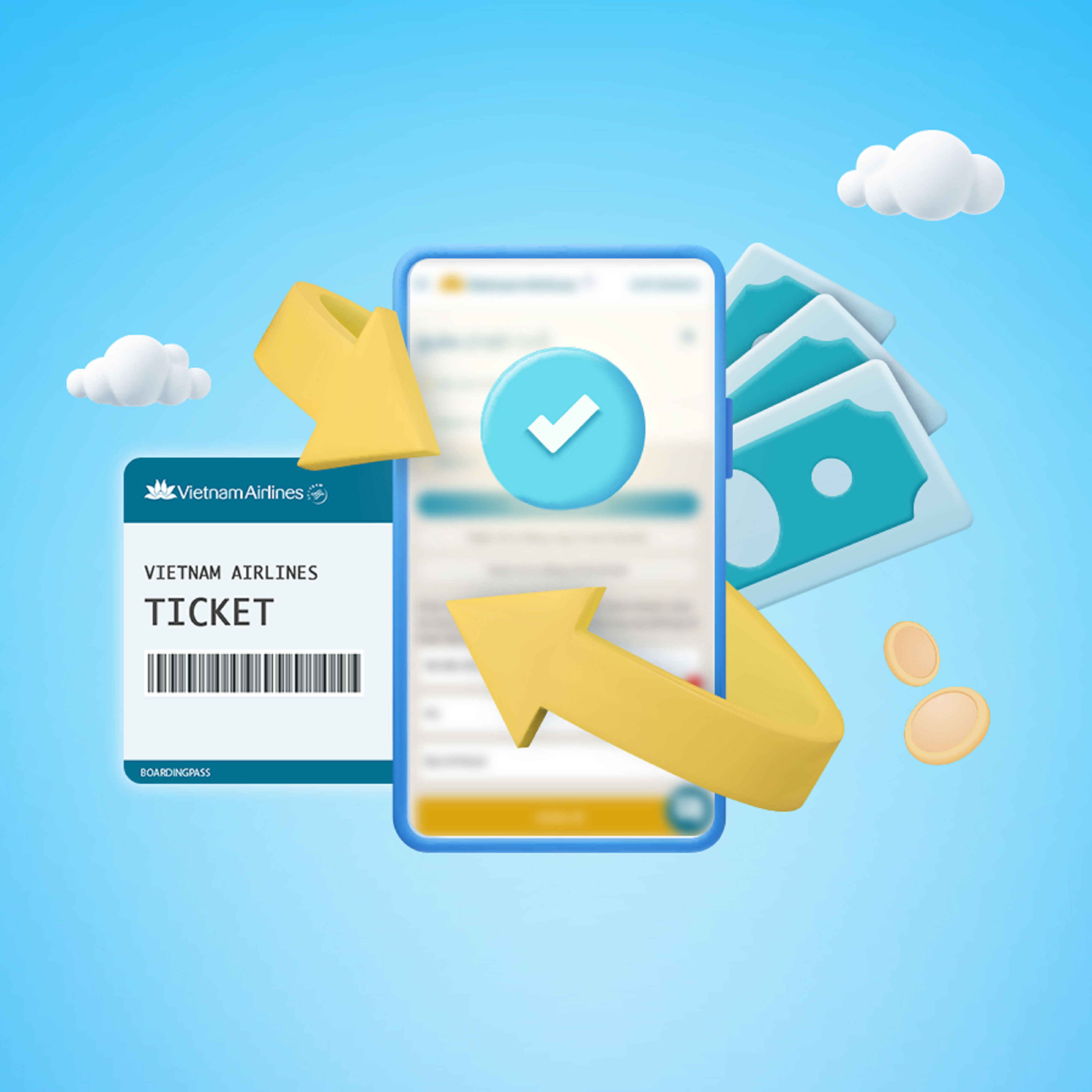 Chỉ với 05 bước đơn giản, giờ đây khách hàng đã hoàn toàn chủ động trong việc gửi yêu cầu hoàn vé, tự động chuyển tiền hoàn về tài khoản ngân hàng trên trang web Vietnam Airlines.