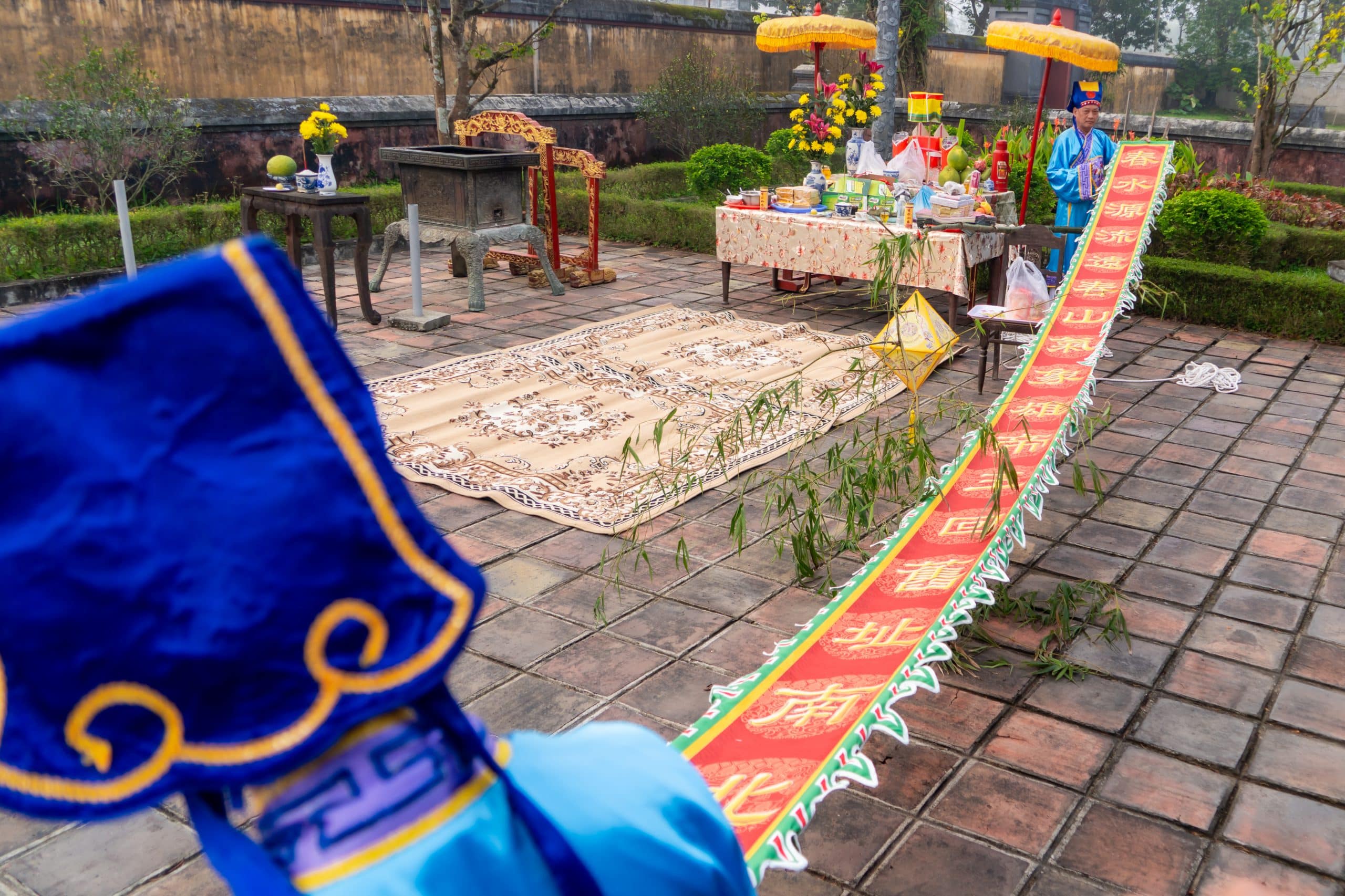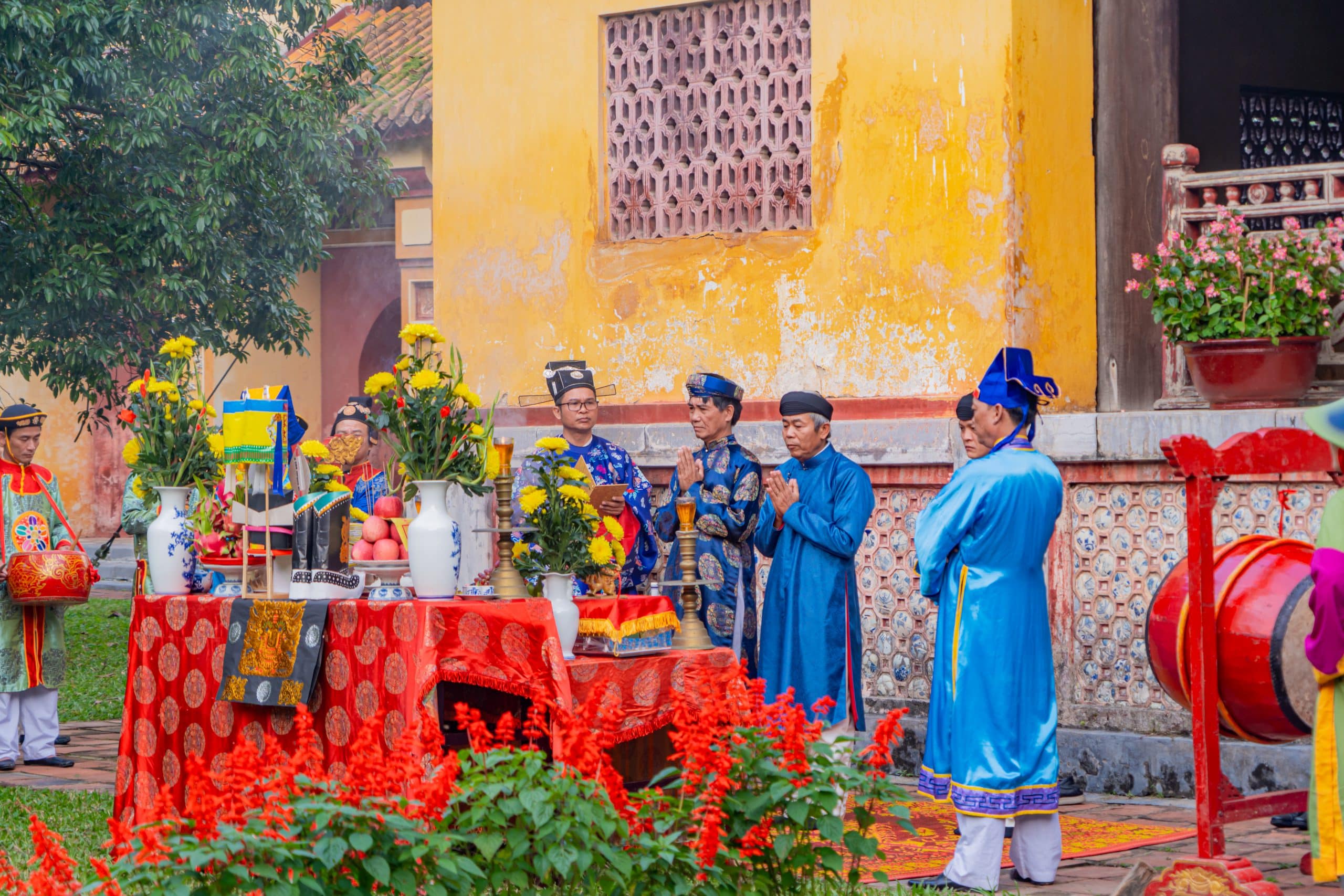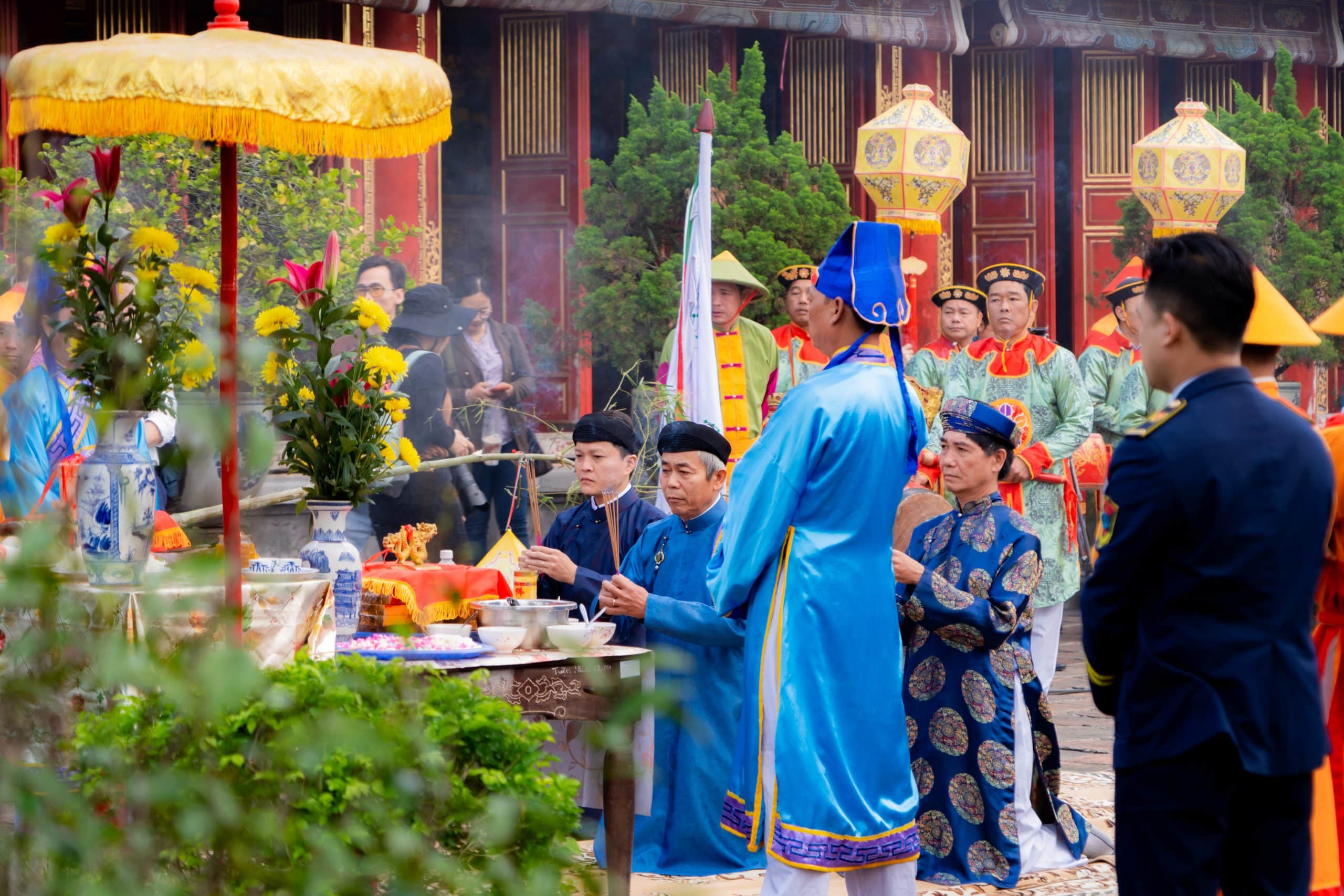 Nghi lễ bắt đầu bằng đoàn rước nêu xuất phát từ cửa Hiển Nhơn, tiến vào Hoàng Thành, dừng tại khu vực sân Hiển Lâm Các để thực hiện nghi thức dựng nêu trước Thế Miếu. Không gian hành lễ được bài trí trang nghiêm, với sự tham gia của đội Đại nhạc và các bồi tự theo đúng nghi thức truyền thống.