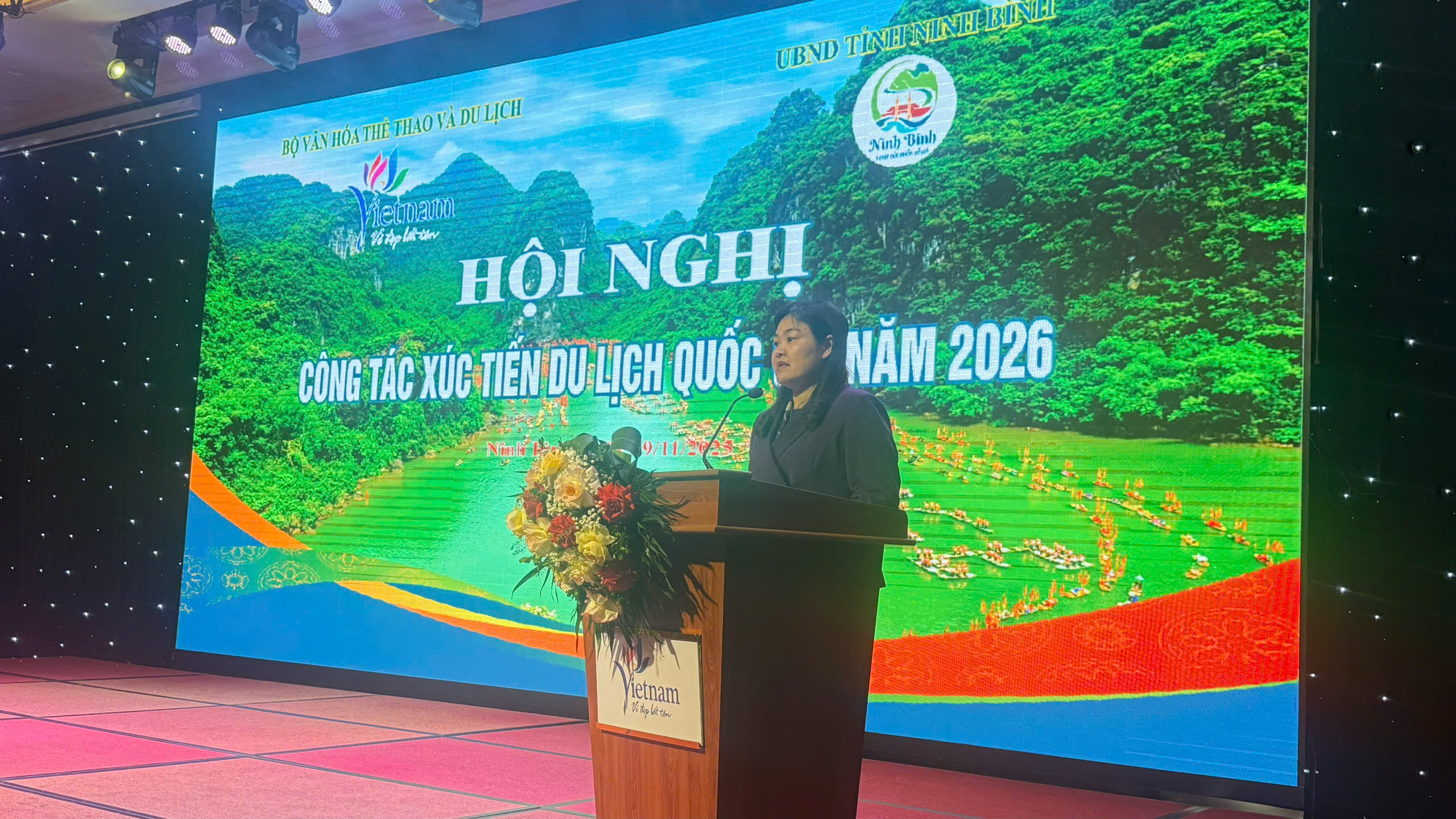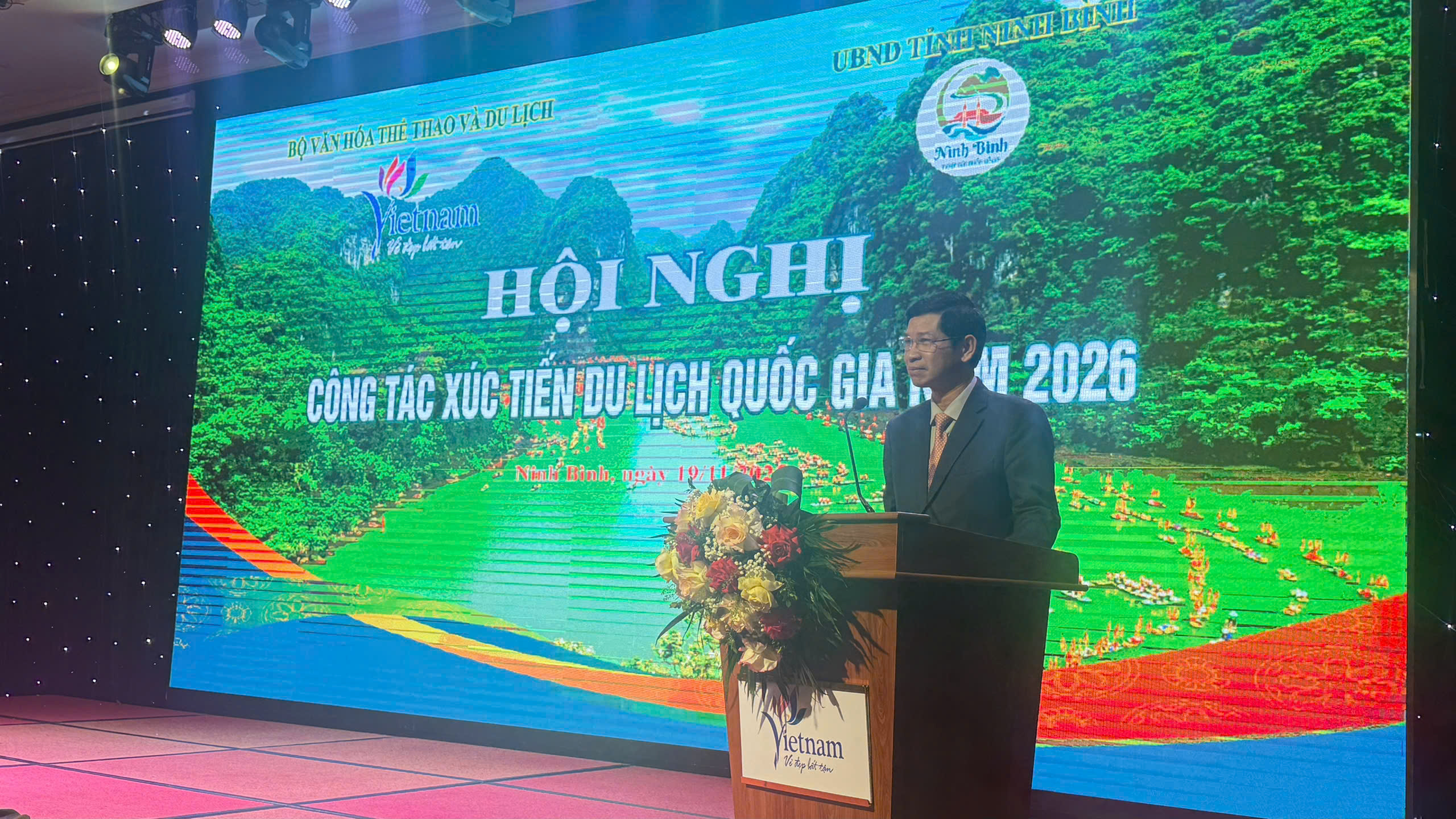 Ngày 19/11/2025, Bộ Văn hóa, Thể thao và Du lịch (VHTTDL) phối hợp với UBND tỉnh Ninh Bình tổ chức Hội nghị về công tác xúc tiến du lịch quốc gia năm 2026. Hội nghị quy tụ lãnh đạo các Bộ, ngành, địa phương, hiệp hội, doanh nghiệp lữ hành, hàng không và các chuyên gia quốc tế nhằm rà soát kết quả năm 2025 và xác lập nhiệm vụ trọng tâm cho năm 2026.
