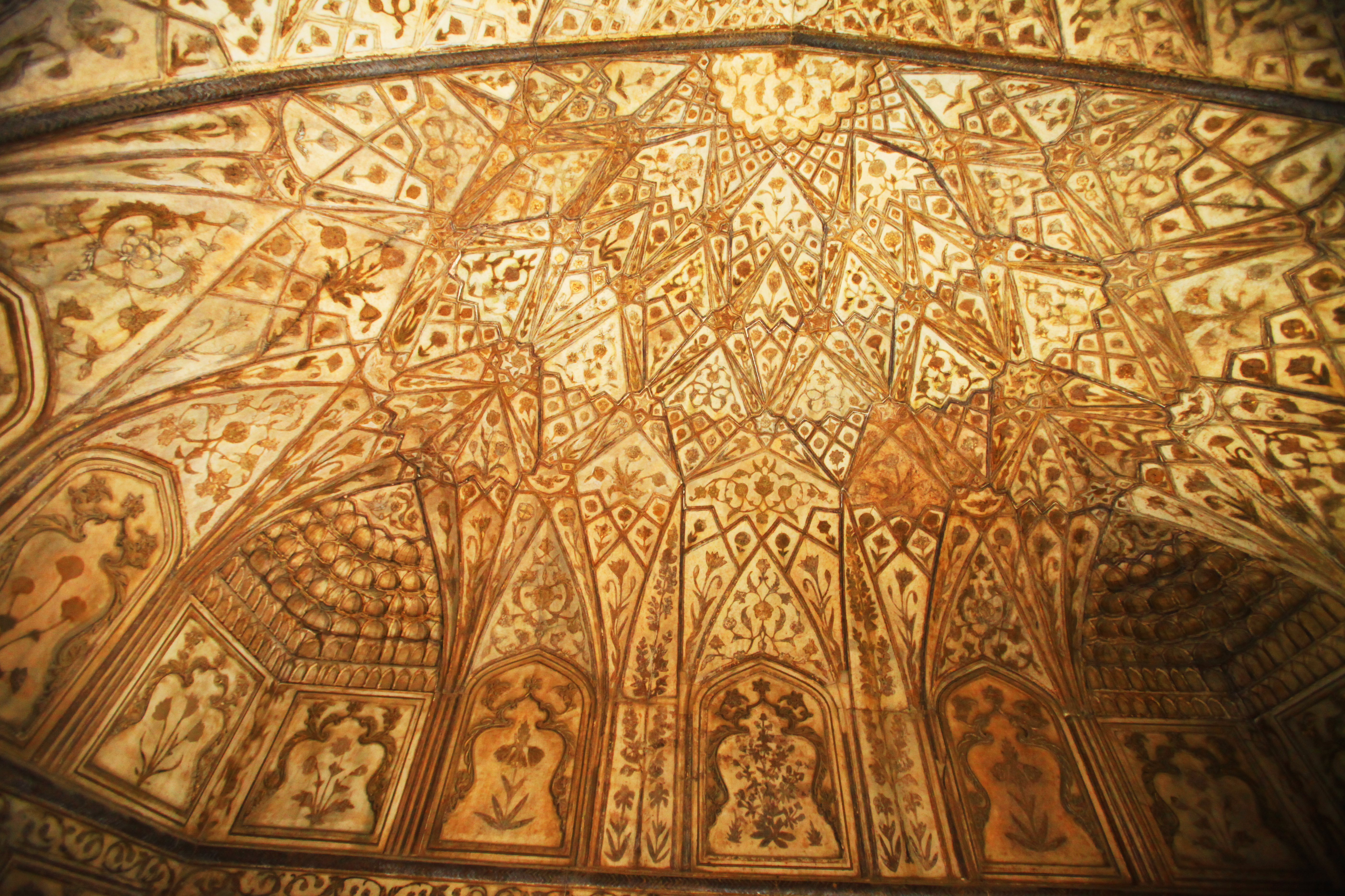 Rất khó để rời mắt khỏi khuôn cổng tuyệt đẹp, bên trên có những vòm tròn và 2 tháp cao theo phong cách đặc trưng Hồi giáo, cũng không thể bỏ qua dẫy nhà phảng phất hình dáng Âu châu dẫn vào cung thiết triều Diwan I Am được xây bằng đá cẩm thạch cẩn đá quý. Mà trên thực tế, đã vào đây, du khách thực sự mê mẩn với vô vàn đường nét chạm trổ tinh xảo từ ngoài vào trong, từ trên xuống dưới. Kỹ nghệ chạm khắc của người Ấn độ thật sự khiến bất kỳ ai được chiêm ngưỡng phải kinh ngạc, điều này khiến người ta còn phải gọi đây là nơi độc nhất vô nhị trên thế giới. Tất cả các mảng tường thành, tường vách cung điện bên trong, những hành lang và hoa viên đều được chạm họa tiết uốn lượn. Các đầu hồi của hệ tường và cột, các mái riềm đều được chạm theo những motip khá thống nhất. Kỳ diệu nhất là những mảng tường đá cẩm thạch được soi thủng để tạo thành mảng hoa văn mềm mại, vừa có công năng tường vách ngăn cách không gian, vừa là hệ trang trí đầy ấn tượng. Cũng không thể không nhắc tới công sức cúa Shar Jahan, là cháu của Akbar. Ông đã cho xây thêm một số tòa nhà bằng đá cẩm thạch bên trong Pháo đài đỏ, đồng thời cho dựng Taj Mahal kề bên. Từ Pháo đài nhìn ra, Taj Mahal phô bày vẻ đẹp kỳ diệu không thể tả hết bằng lời và đó cũng là một chứng tích của tình yêu bất diệt mà Shar Jahan dành tặng người vợ thân yêu của mình.