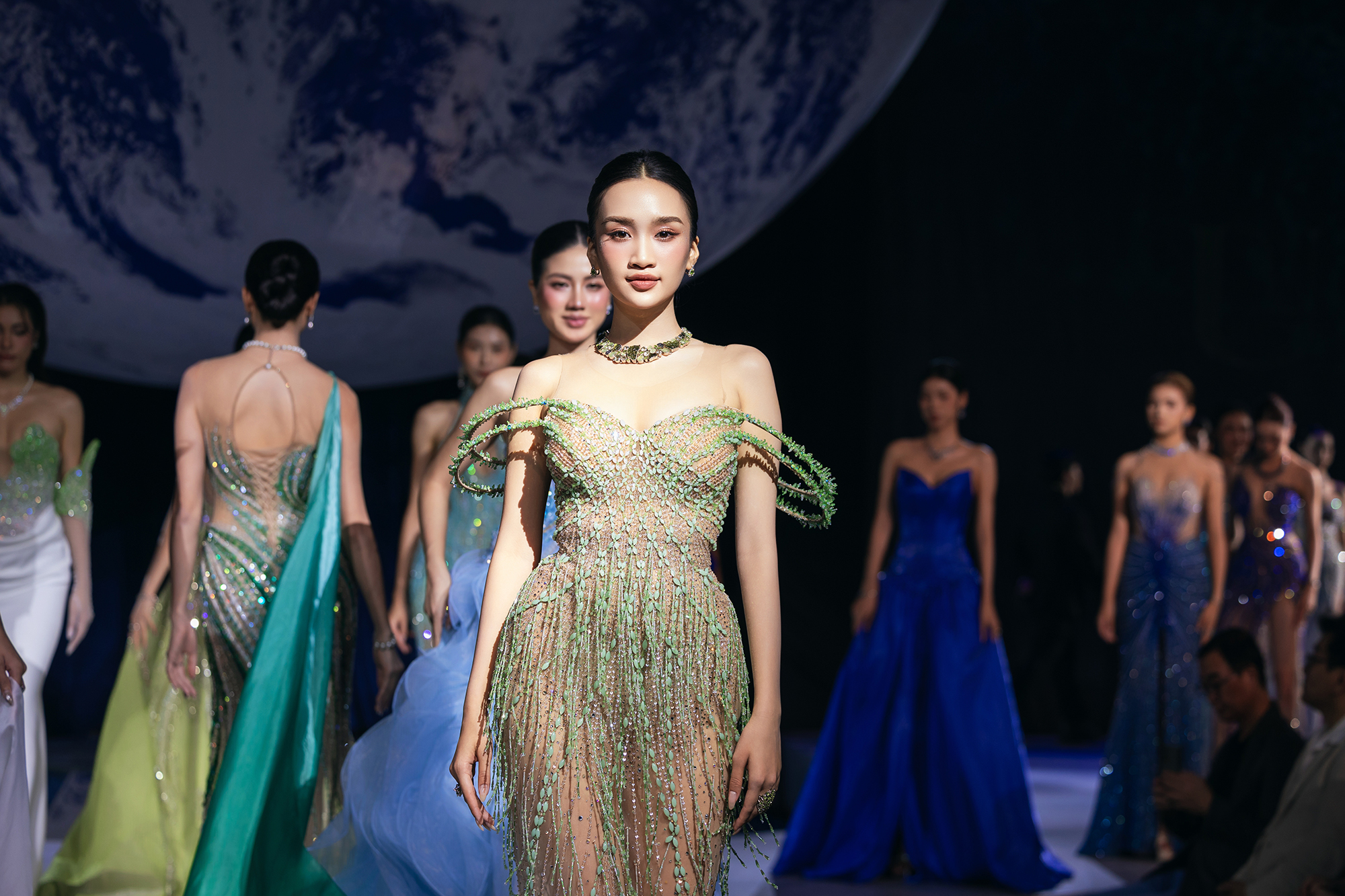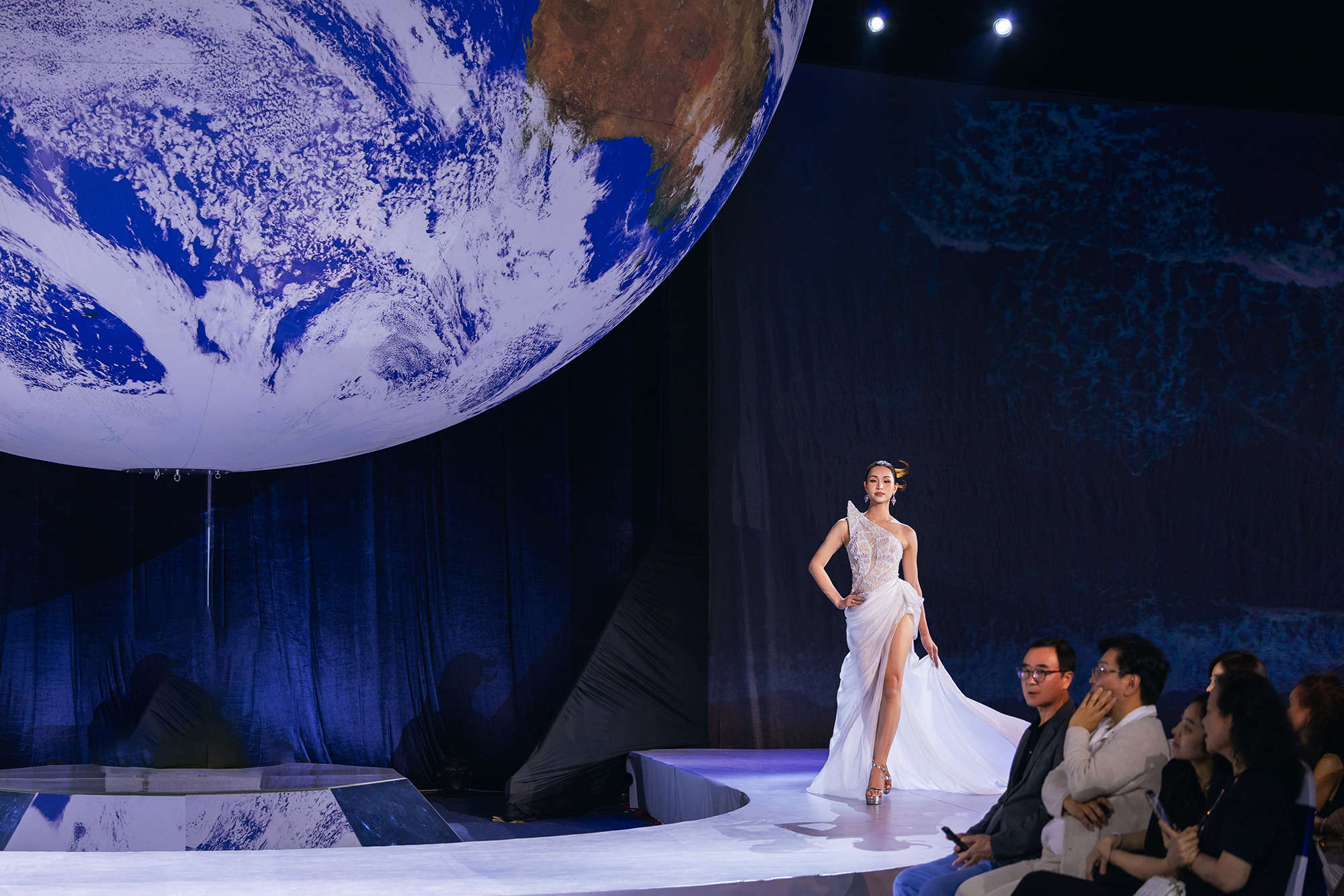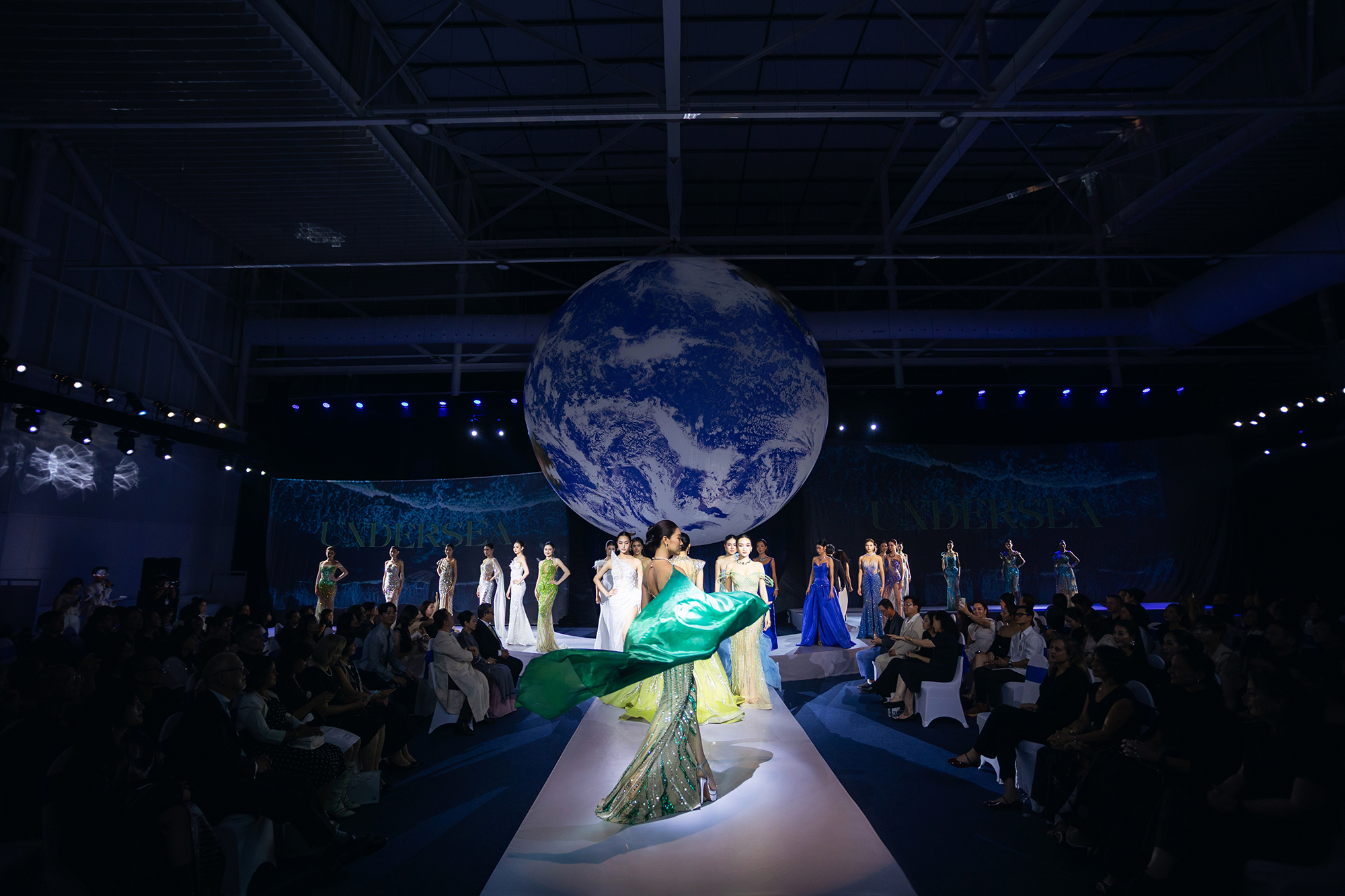 Tâm điểm của sự kiện là màn trình diễn bộ sưu tập “Undersea” của nhà thiết kế Nguyễn Minh Tuấn. Dưới ánh sáng huyền ảo từ tác phẩm “Quả cầu Gaia” của nghệ sĩ nổi tiếng thế giới Luke Jerram, những thiết kế lấy cảm hứng từ biển cả khoe trọn vẻ đẹp của người mặc qua nhiều phom dáng khác nhau như váy đuôi cá hay váy xòe nữ tính. Chất liệu cao cấp như phi bóng, kim sa, organza và voan tơ được xử lý thủ công, kết hợp kỹ thuật đính pha lê Swarovski và in 3D tinh xảo, tạo nên vẻ lấp lánh như ánh sáng trên mặt nước biển.