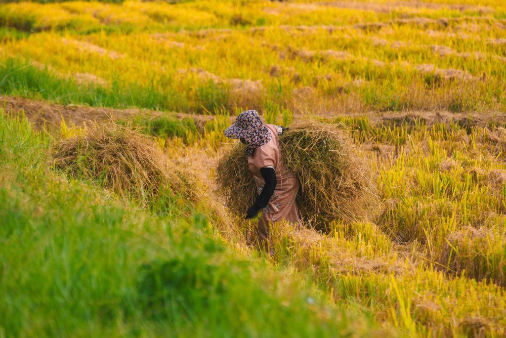 Mùa gặt rộn ràng như một hội làng. Tiếng máy gặt xen tiếng cười nói, bóng áo nâu sạm nắng thoăn thoắt gom lúa. Trên những xe thồ chất đầy thóc, hạt vàng trôi theo dòng về sân phơi, nơi mùi thơm của gạo mới quyện hương rơm và đất đồng. Bữa cơm ngày mùa với bát cơm trắng dẻo bên bát canh rau, khúc cá kho đã gắn với ký ức bao thế hệ, trở thành chất quê không nơi phố thị nào có được.