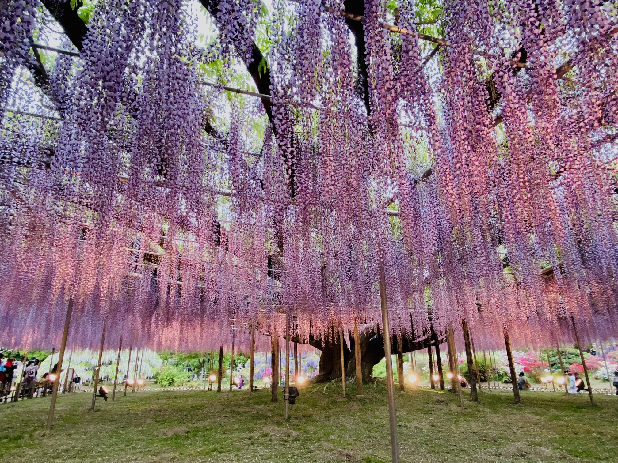 Hoa anh đào nở khắp Nhật Bản từ nửa cuối tháng 3 kéo dài đến hết tháng 4, bên cạnh hoa mơ (ume) và hoa mận (plum) nở cùng thời điểm. Vào cuối tháng 4 đến đầu tháng 5, hoa đỗ quyên nở đỏ rực các triền đồi và được trồng đủ màu sắc trong các công viên. Hoa mắt xanh (nemophila) nở tưng bừng dọc theo vùng duyên hải phía đông, kéo dài trên khắp các triền đồi. Loài hoa khoe này khoe sắc xanh biếc ban ngày và ngả sang màu tím thẫm khi mặt trời tắt nắng. Cũng vào thời điểm này, ấn tượng nhất chính là hoa tử đằng (wisteria). Sự khoe sắc của tử đằng xứng đáng là một tác phẩm nghệ thuật dưới bàn tay người Nhật. Hiện tại, ở Nhật có vô số gốc tử đằng trên 200 tuổi, đặc biệt trong số đó chính là các gốc tử đằng có từ 300 đến 400 tuổi, toạ lạc tại công viên Ashikaga ở tỉnh Tochigi.