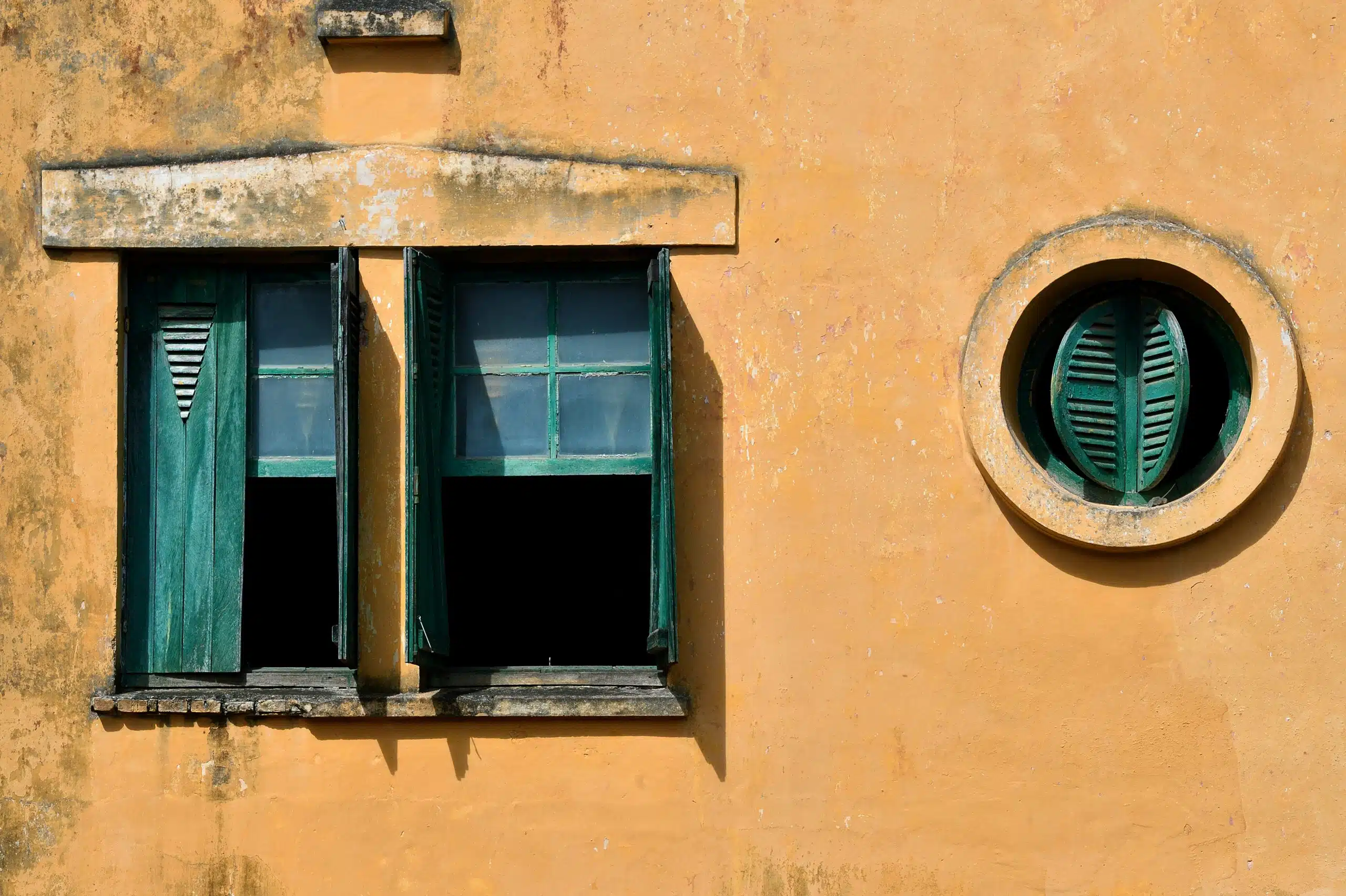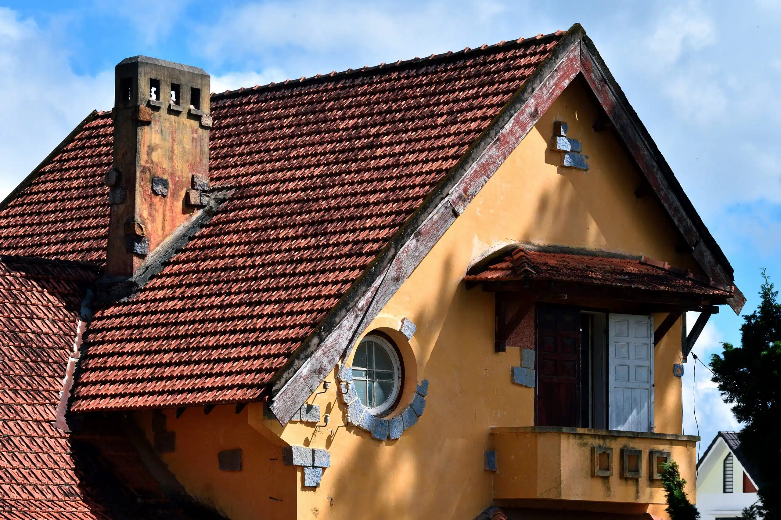 Phổ biến nhất và ấn tượng nhất vẫn là cửa tò vò, nằm cân đối dưới hai cạnh chéo của mái ngói hình chữ A, thường là một cửa số tròn thanh nhã, tạo nên một bố cục hài hòa giữa đường thẳng và đường cong. Cửa sổ tròn cũng là loại cửa dễ thiên biến vạn hóa tùy theo sở thích của chủ nhân. Có thể là một cửa chớp tròn lọt lòng vừa vặn, một cửa chớp vuông cân đối, một vòng gạch thẻ tạo nét hoa văn tinh tế hay cách điệu hơn nữa là một hình bát giác.
