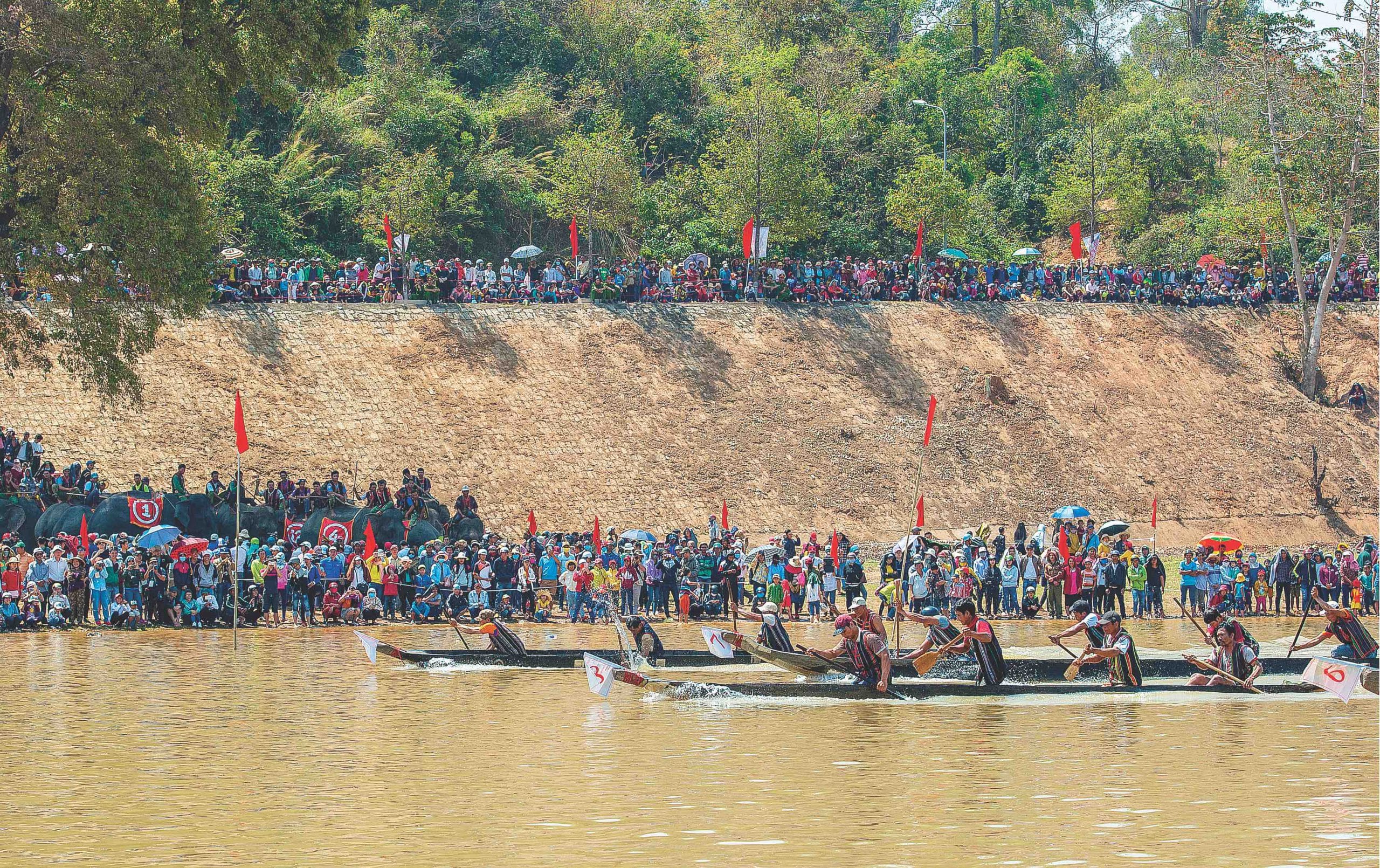 Đứng ở đỉnh núi Chư Yang Sin hùng vĩ, từ độ cao 2.442m so với mực nước biển, du khách không chỉ bị mê hoặc bởi màu xanh của sự đa dạng hệ sinh thái thực vật, màu vàng của cánh đồng lúa chín, sự độc đáo từ kiến trúc nhà dài của người Ê Đê, M’Nông mà còn bởi sự di chuyển của những chiếc thuyền độc mộc tựa như những chú chim hạc lướt trên mặt hồ Lắk phẳng lặng, bình yên.