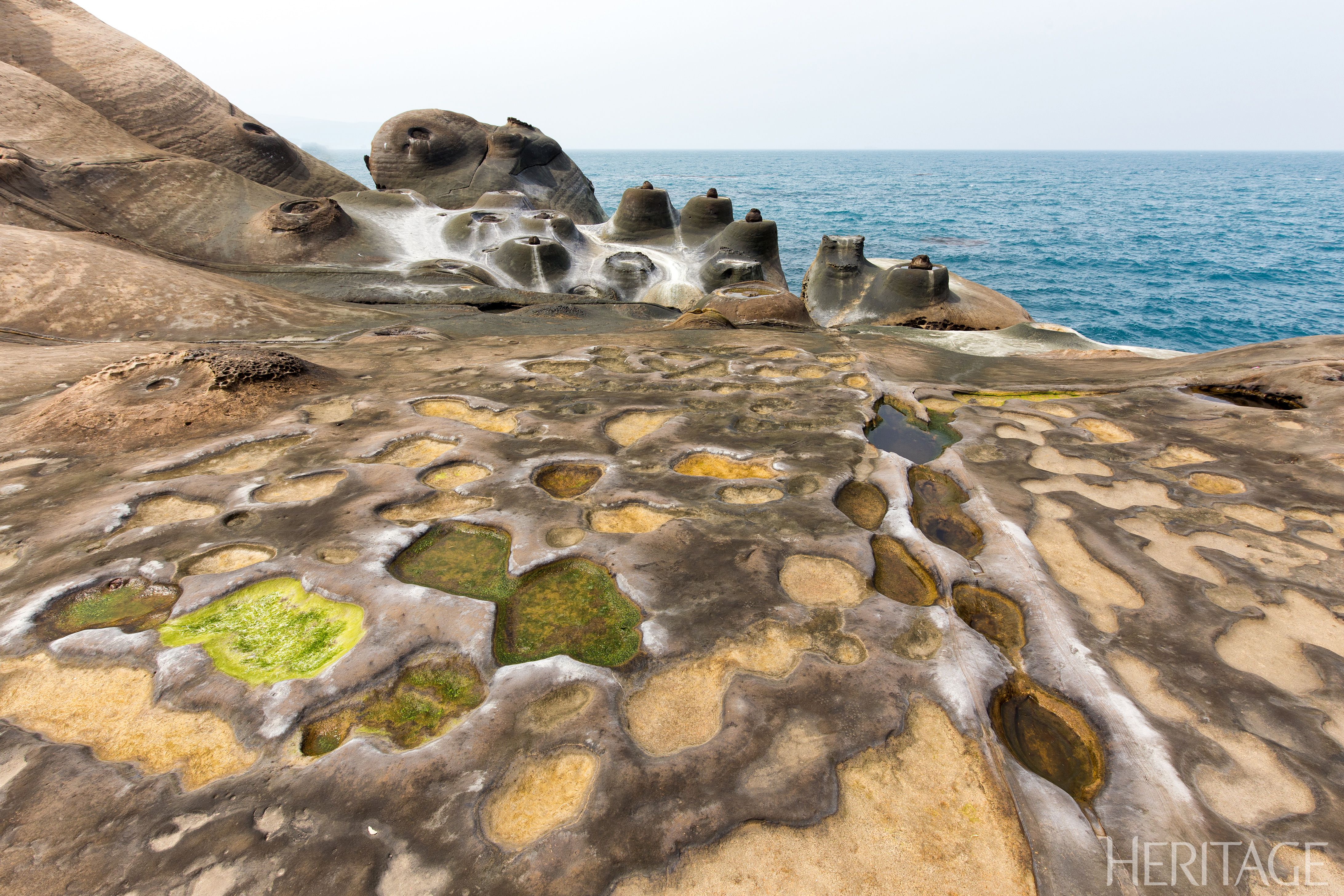 Khoảnh khắc bình yên chầm chậm trôi qua để nhường lại cho cảm giác choáng ngợp khi bức tranh của đá bên bờ biển hiện ra trước mắt. Những khối đá kì lạ đứng trước biển làm dấy lên biết bao câu hỏi về tự nhiên, về quá trình xâm lấn của biển vào đất liền đã đem đến những kì tích thế nào?! Hàng vạn năm qua, sóng biển cứ vỗ mãi đá núi hay thiên nhiên đã tạo nên những điều lạ lùng ở nơi đây. Một trong những điều lạ lùng chính là sự sắp xếp của tự nhiên thành 3 khu vực với kiểu hình thù khác nhau của những khối đá. Khu vực 1 là nơi của những khối đá hình nấm và hình củ gừng hay có nhiều người nhìn ra chúng tựa hình nến hay ly kem. Khu vực 2 đặc biệt hơn bởi có những khối đá mang hình dáng chiếc hài mà người ta đặt tên là đá Hài Tiên hay đá Đầu Rồng, đá Voi… Nổi bật nhất là khối đá được đặt tên Đầu Nữ Hoàng, cũng là biểu tượng của thị trấn Vạn Lịch. Đây là một trong những hình ảnh nổi tiếng nhất của công viên Dã Liễu và dường như ai tới đây cũng cố gắng lưu giữ những tấm hình tuyệt đẹp bên Đầu Nữ Hoàng kiêu sa hướng về biển khơi. Các nhà khoa học đánh giá khối đá Đầu Nữ Hoàng này có tuổi đời khoảng hơn 4.000 năm và phần cổ của nó cũng đang trong tình trạng bị đe dọa, ngày càng nhỏ đi do sự bào mòn của tự nhiên và sự “quan tâm” quá mức của du khách. Khu vực 3 nằm phía bên kia của công viên, có diện tích nhỏ nhất trong ba khu vực, nằm sát vách núi dựng đứng, còn phía dưới là những con sóng chảy xiết dữ dội. Các vách đá khu vực này bị sóng biển bào mòn thành từng lớp như đặt chồng lên nhau. Tiếp cận khu vực này khó khăn hơn hai khu vực trước nhưng lại sở hữu nhiều phiến đá có hình thù lạ mắt như đá Tổ Ong, đá Hạt Đậu và nhiều hòn đá khác được đặt tên tựa hình hài là hòn Ngọc Trai, hòn Hải Âu… Ngắm nhìn những hòn đá tuyệt đẹp này bên khung cảnh thanh bình của ngọn đồi Hiếu Thảo kề bên, trên nền biển xanh thẳm, tôi đã cảm được giá trị của vẻ đẹp thiên nhiên quý giá nhường nào. Như một lời chia tay ấn tượng nhất, nằm ở cuối con đường trên hành trình tham quan công viên Dã Liễu chính là khối đá mang hình sư tử đang nhìn về phía mũi Dã Liễu. Để ngắm lại cảnh quan kì vĩ này, tôi đã ngoảnh lại theo hướng nhìn của Sư tử Leopard oai phong. Gió biển vẫn vi vu thổi, những hòn đá mang dáng hình kì lạ vẫn gợi nên những điều hấp dẫn với muôn nghìn lượt du khách tới nơi đây.