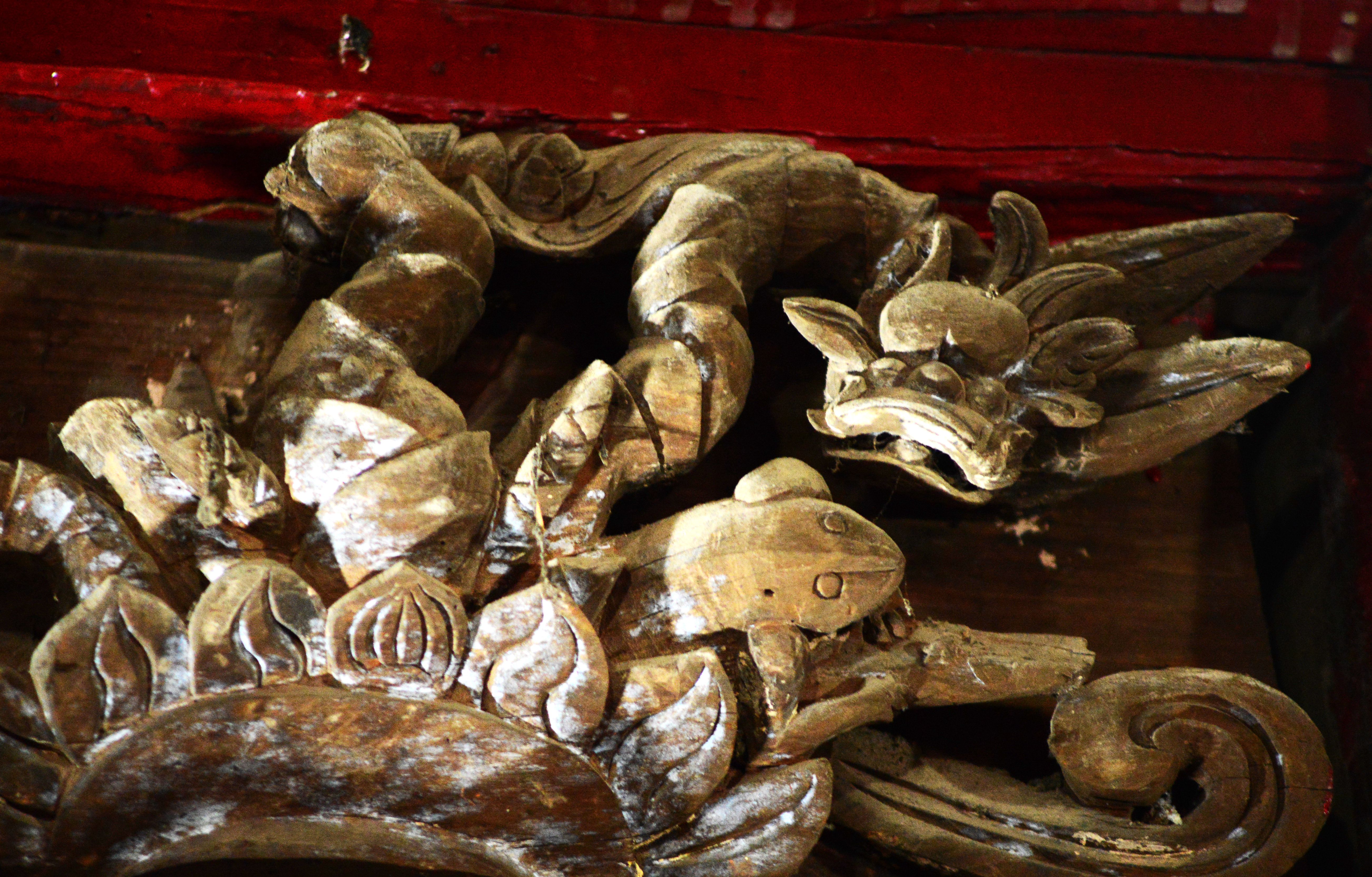 Người thợ chạm khắc gỗ đã mang những đề tài sinh hoạt đời thường trang trí cho đình, từ những cảnh đấu vật, hội làng, nữ tướng cưỡi voi, ông tướng cưỡi hổ, cưỡi ngựa bắn cung cho đến những con vật linh, có đủ cả tứ linh gồm: long (rồng), ly (sư tử), quy (rùa), phượng. Điểm đặc biệt là hai con vật linh biểu tượng của vương quyền là rồng (biểu tượng cho vua) và phượng (biểu tượng cho hoàng hậu) từ xưa chỉ được trang trí trong đền đài ở Hoàng Thành Thăng Long, các chùa thời Lý, Trần thì nay lại còn thấy ở đình làng trong thế kỷ 17 và đầu thế kỷ 18 như ở Kim Hoàng. Điều này phản ánh tâm thức của xã hội người Việt đã có sự thay đổi, sự chi phối của vương quyền đã giảm bớt. Thậm chí, các mảng chạm khắc đình làng còn thể hiện cảnh đùa giỡn với cả rồng, phượng như nhiều cảnh tiên nữ cưỡi rồng, em bé thổi sáo cưỡi trên lưng phượng hết sức sinh động. Đôi mảng chạm còn có cảnh trai gái đùa nhau, cả những con vật bình thường như con thạch sùng cũng được khắc họa…