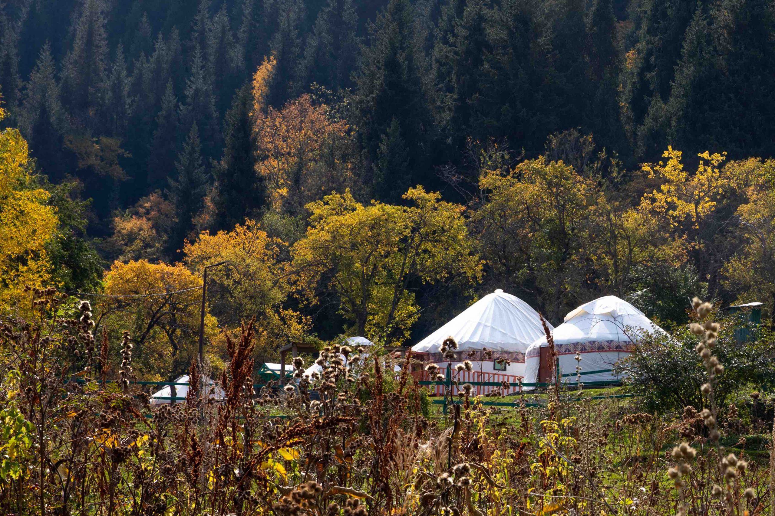 Nếu là người thích phiêu lưu, muốn được hòa mình với thiên nhiên thì Kyrgyzstan là nơi không nên bỏ qua trong danh sách những điểm cần phải đến của bạn. Chỉ cần chạy ra khỏi thành phố khoảng 10km, bạn sẽ thấy khắp nơi là thảo nguyên, những ngọn núi phủ tuyết trắng sừng sững, sắc nhọn như pha lê chưa được mài giũa, soi bóng xuống hồ nước trong xanh. Đàn ngựa cùng những túp lều của người dân du mục góp phần tạo nên bức tranh rực rỡ sắc màu nơi đây.