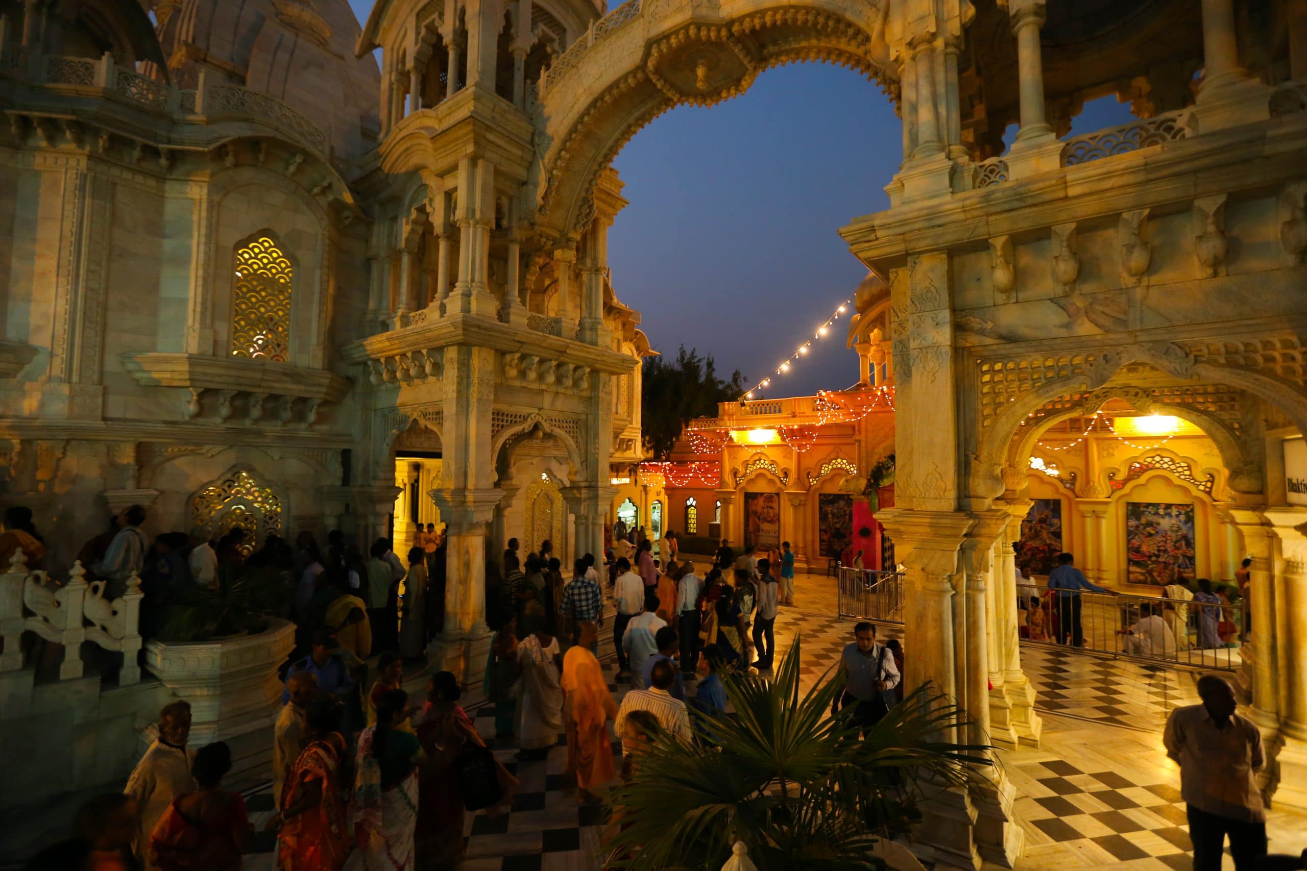 Thị trấn Vrindavan, theo đạo Hindu, là nơi thần Krishna được sinh ra và trải qua những ngày thơ ấu của mình. Thị trấn này cách Mathura khoảng 11km, nằm trên đường cao tốc từ thành phố Agra về Delhi. Nơi đây sở hữu rất nhiều ngôi đền thiêng liêng dành riêng cho việc thờ phụng thần Krishna và Radha. Trong khoảng từ tháng 8 đến cuối năm, các lễ hội diễn ra liên tục tại nơi đây tạo nên một sức hút về văn hóa vô cùng đặc biệt. Đối với người Hindu, đây là một trong những thời điểm quan trọng nhất trong năm mà họ vô cùng mong đợi. Trong những ngày này, họ nhảy múa và cầu nguyện dưới bức tượng thần Krishna và người đàn bà của ngài là Radha.