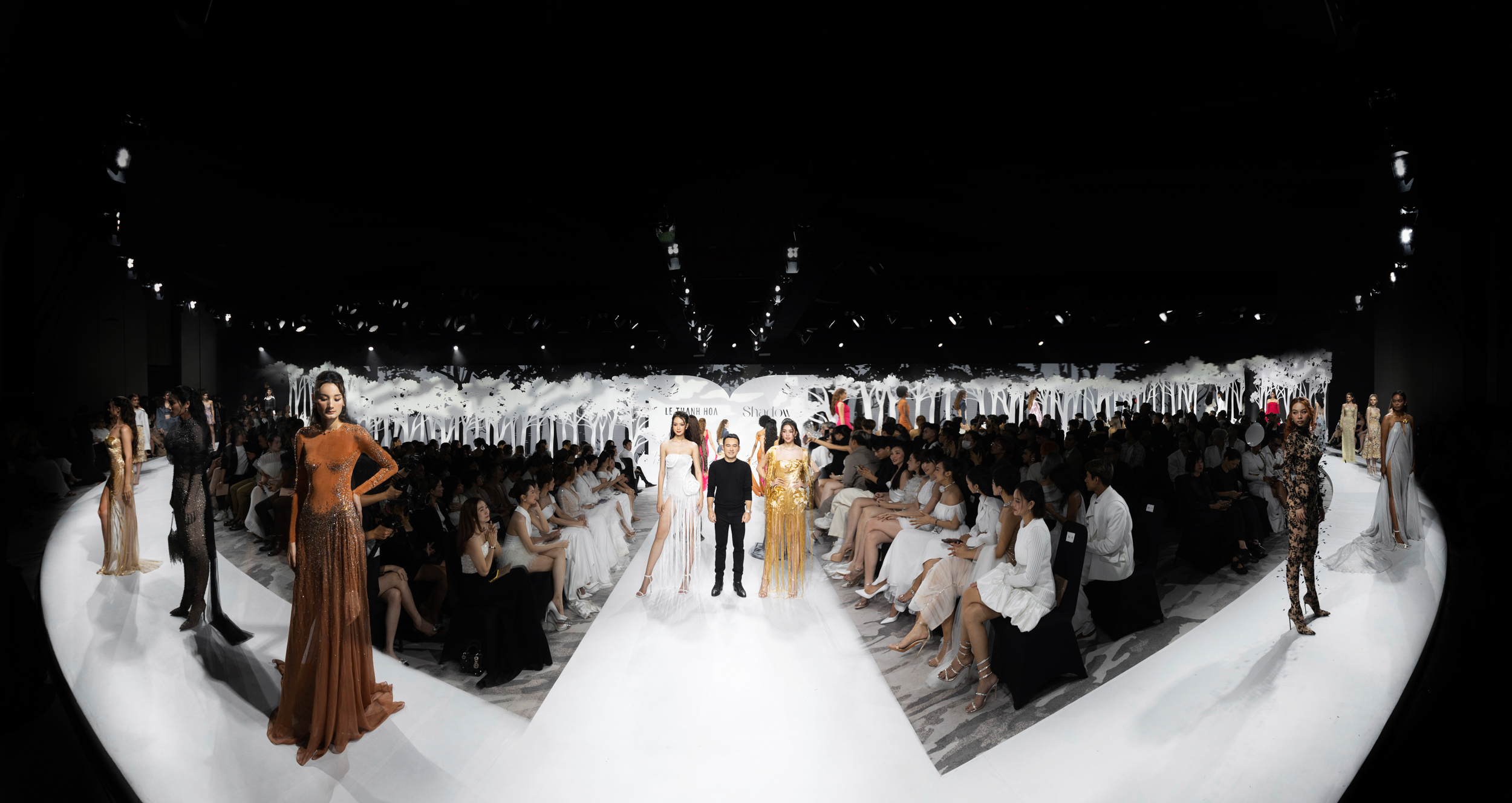 Show diễn “Shadow” đã trở thành một sự kiện đáng chú ý nhất showbiz ngày 31/3, không chỉ bởi sự xuất hiện của những sao Việt trên thảm đỏ mà còn bởi các bộ trang phục tinh tế và những sải bước catwalk chuyên nghiệp của các người mẫu. Sau thành công của show “An”, Lê Thanh Hòa tiếp tục bắt tay cùng đạo diễn Long Kan, hướng đến một sân khấu đơn giản, tinh tế với tông trắng, vừa theo sát chủ đề của bộ sưu tập vừa tôn lên tối đa vẻ đẹp của các thiết kế.