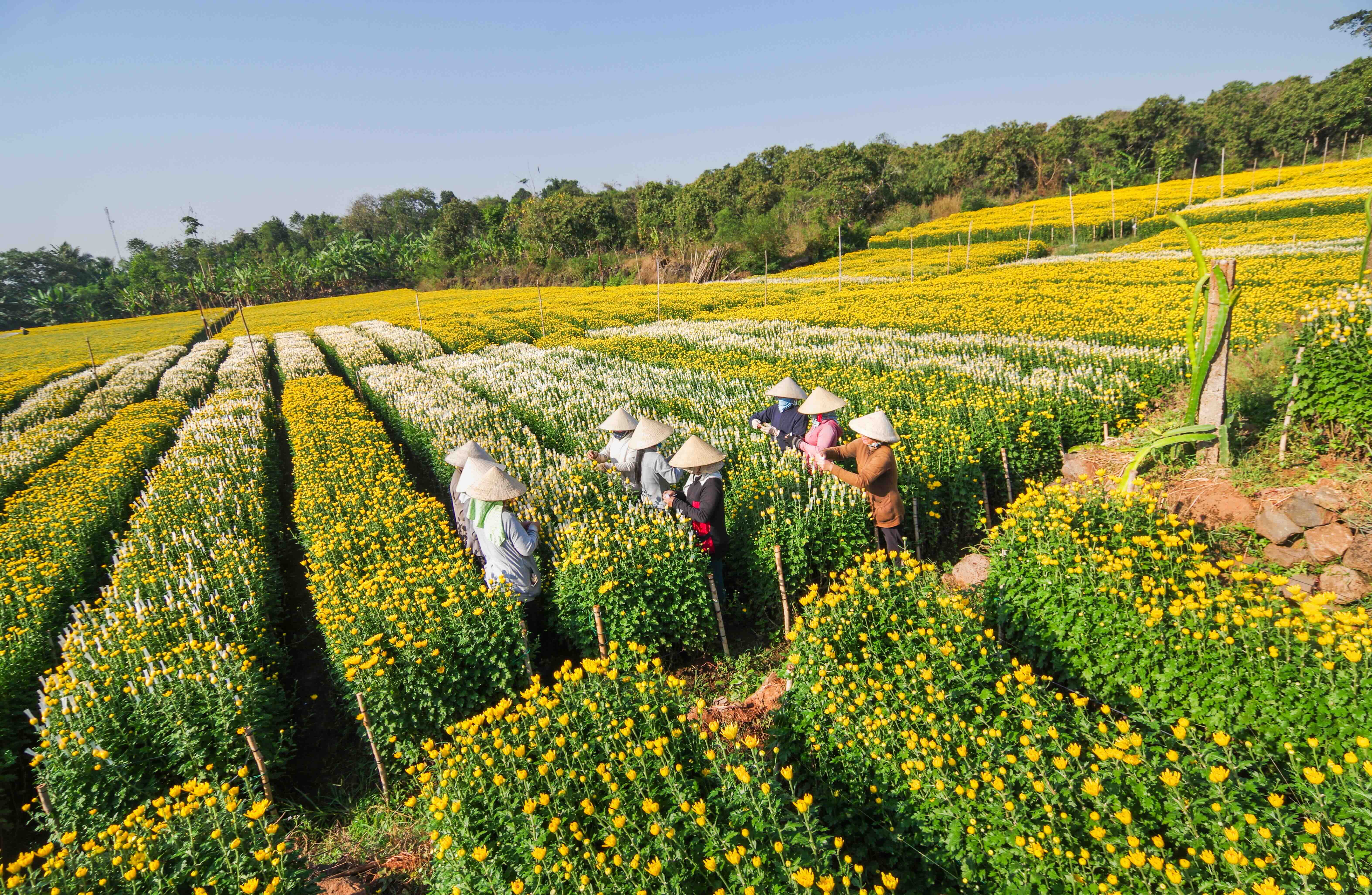Những cư dân thế hệ trước của vùng đất này phần lớn là giáo dân di cư từ miền Bắc. Họ mang theo niềm tin, nếp sống đạo, kinh nghiệm trồng trọt và tinh thần cần cù đến khai khẩn vùng đất còn hoang sơ này. Họ dựng nhà, lập xứ, dựng tháp chuông vươn lên giữa đồng hoa, nơi tiếng cầu kinh chiều hòa quyện hương cúc vàng mỗi độ Tết đến. Chính từ nền đất bazan ấy, một cộng đồng vừa mộ đạo vừa cần lao đã hình thành, biến nơi đây thành “thủ phủ hoa Tết” lớn nhất miền Đông Nam Bộ – nơi sắc vàng của hoa và lòng người cùng tỏa sáng.