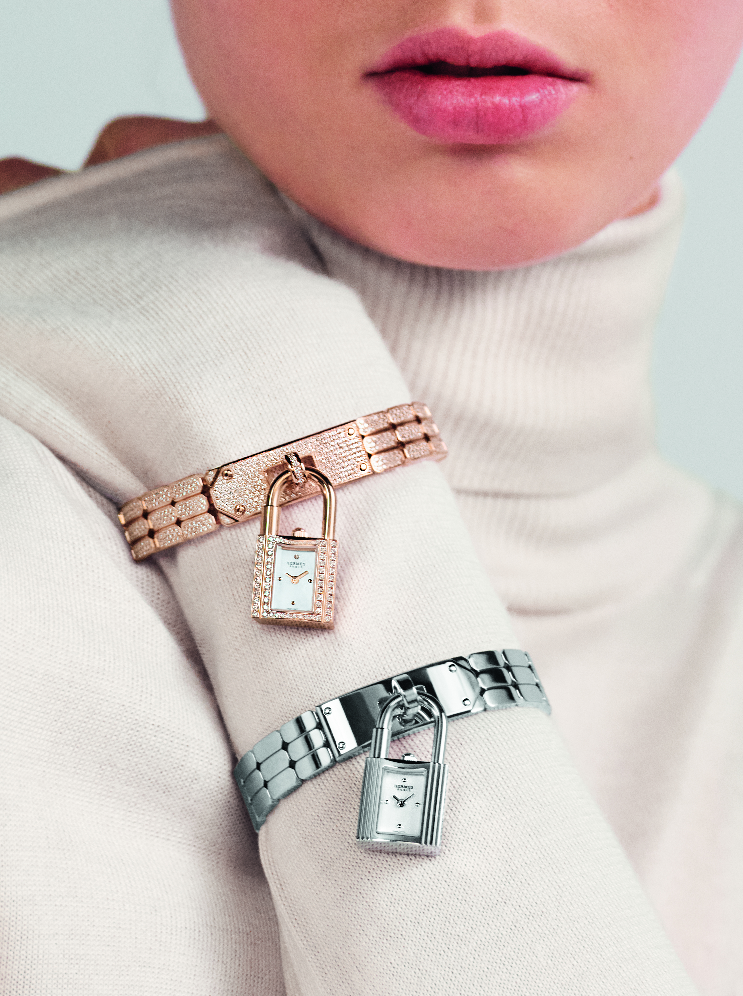 Sự mới mẻ thú vị của chiếc đồng hồ Kelly lần này là khả năng biến hóa trong ứng dụng, như đeo trên cổ tựa một sợi dây chuyền với mặt đồng hồ giấu trong chiếc chuông bằng da bê màu đen hay da cá sấu được gắn chặt vào một sợi dây da. Tất cả được làm thủ công bởi những nghệ nhân tại Hermès với sự trau chuốt, tỉ mỉ trong từng chi tiết.