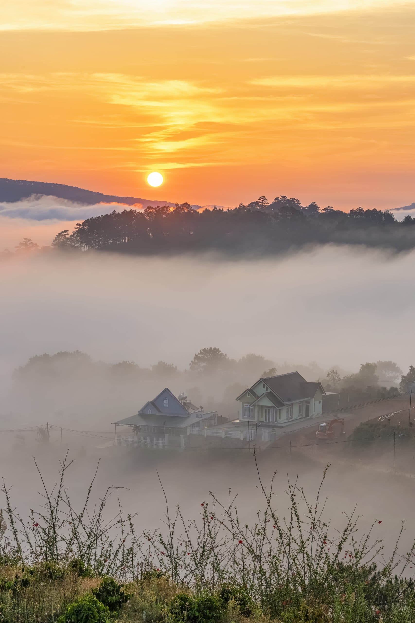 Nếu muốn thay đổi quang cảnh và cũng không muốn phải dậy sớm đi khoảng 20km từ trung tâm Đà Lạt để ngắm hoa cà phê thì bạn có thể đi từ chiều hôm trước ngắm hoàng hôn buông xuống trên triền đồi hoa cà phê rồi về homestay ngủ, sáng hôm sau ra đồi chè đón mây, quay lại homestay ăn sáng và đi ngắm hoa cà phê trên đường về lại Đà Lạt. Khu vực thôn Đất Làng, ngay đầu thị trấn Cầu Đất và xã Xuân Sơn đều dễ dàng tìm một homestay xinh xắn.