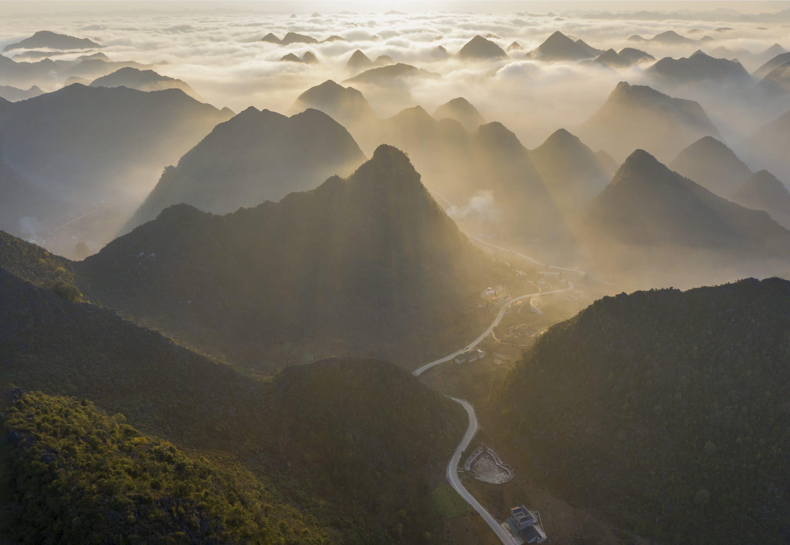 Cao nguyên đá Đồng Văn được UNESCO công nhận là công viên địa chất toàn cầu đầu tiên tại Việt Nam và thứ 2 ở Đông Nam Á. Đến với Đồng Văn, một địa điểm thu hút người yêu nhiếp ảnh như tôi chính là Sà Phìn, nơi có những ngọn núi đá tai mèo cao vút. Sà Phìn được ví như cổng trời của cao nguyên đá, cách huyện Đồng Văn 15km về hướng Yên Minh, tôi đã may mắn gặp được khoảnh khắc tuyệt đẹp khi đón bình minh tại đây, được thả hồn bay bổng trên những ngọn núi đá nhấp nhô hòa quyện cùng biển mây bồng bềnh giữa nắng sớm cao nguyên.