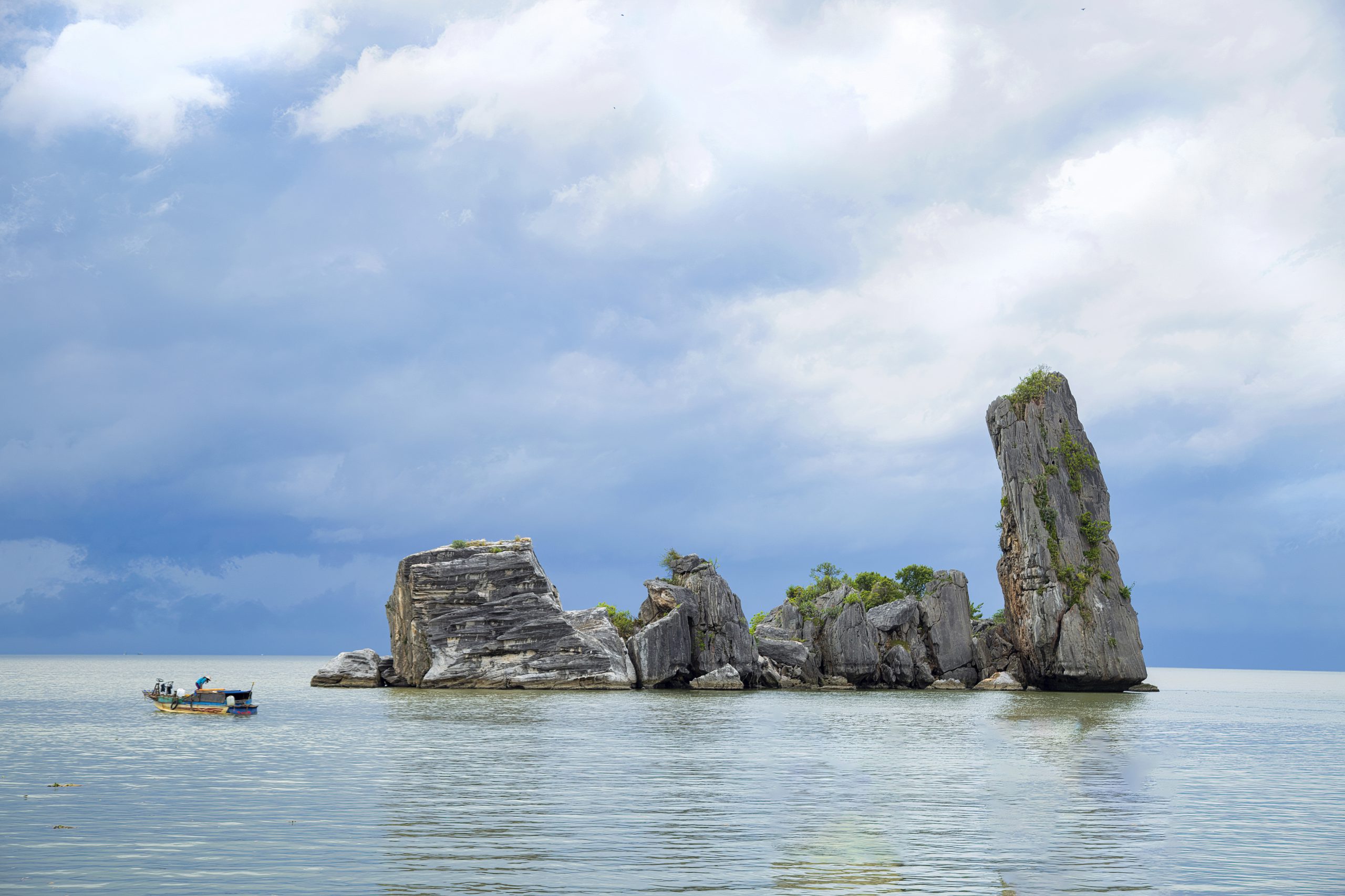Lên núi Pháo Đài nhâm nhi ly cafe sáng, tôi mải mê ngắm không gian rộng mở nơi cửa sông Giang Thành. Trái núi nhỏ ngay đầu cầu Tô Châu này – xưa vốn là một hòn đảo ở cửa sông Giang Thành, nay đã “dính” vào đất liền – là 1 trong số 10 cảnh đẹp nổi tiếng trong Hà Tiên thập cảnh, được Mạc Thiên Tích – danh nhân nổi tiếng Hà Tiên đời chúa Nguyễn là một trong những người mở mang vùng đất Hà Tiên – đưa vào thơ ca với cái tên: Kim Dự lan đào (hòn đảo vàng ngăn sóng gió cho Hà Tiên).