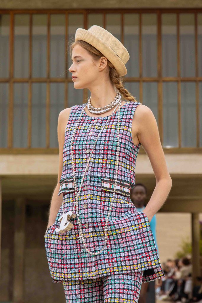 Giới mộ điệu có thể nhận thấy những chiếc mũ lặn có khuy bấm trở thành điểm nhấn nổi bật trong bộ sưu tập nghỉ dưỡng lần này, bắt đầu với áo khoác của bộ vest CHANEL màu xanh lá cây hay đâu đó là trên những đường viền cổ gợi nhớ về thập niên 60. Dựa trên mộng tưởng về sự hòa mình vào lòng biển, Virginie Viard đã đưa BST Cruise trở thành một cuộc phiêu lưu thông qua các họa tiết bao gồm đàn cá nhỏ, lưới đánh cá, vỏ sò,… trên những chiếc váy bồng bềnh, áo khoác, gilê, dệt kim, áo phông và áo khoác… Trong khi đó, trên mặt nước, là sự xuất hiện của những chất liệu bạc như thể sự phản chiếu ánh sáng mặt trời trên sóng nước mềm mại. Điều đặc biệt ở đây là các trang phục gợi lại ký ức về ngày hè chơi đùa bên hồ bơi. Chúng xuất hiện trong hình dáng của áo jersey có được xử lý tạo hiệu ứng như neoprene, vải tweed và áo khoác đính sequin, váy dài, áo trùm và thậm chí cả hình thêu cổ điển trên túi với màu sắc, họa tiết lưới hoặc hoa văn hình học.