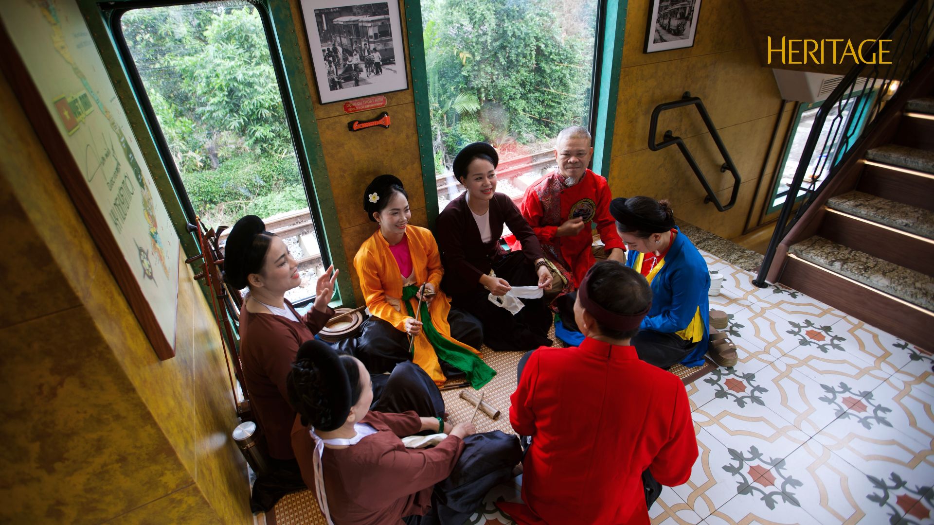 Mỗi toa tàu được đặt tên theo những cửa ô cũ: Ô Quan Chưởng, Ô Cầu Dền, Ô Đống Mác, Ô Cầu Giấy, Ô Chợ Dừa. Những cái tên giản dị mà gợi nhắc cả một quá khứ Thăng Long nghìn năm. Trên hành trình ấy, tiếng quan họ bỗng ngân lên, xen lẫn điệu xẩm dịu dàng. Cùng với chén trà sen, miếng cốm dẻo thơm, trải nghiệm trên tàu trở thành sự hòa quyện của vị giác, thính giác và thị giác.