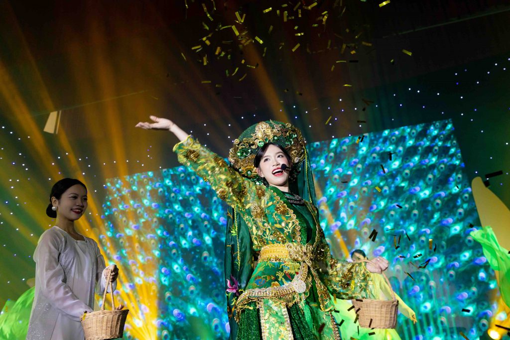 Bữa tiệc sắc màu mở ra với phần Trình diễn dạ hội, nơi các thí sinh xuất hiện trong trang phục lộng lẫy, tự tin sải bước dưới ánh đèn sân khấu. Từng ánh mắt, nụ cười đều toát lên sự thanh lịch, gu thẩm mỹ và phong thái chuẩn mực – những giá trị đã làm nên hình ảnh người tiếp viên Vietnam Airlines: chuyên nghiệp, tinh tế và gần gũi.