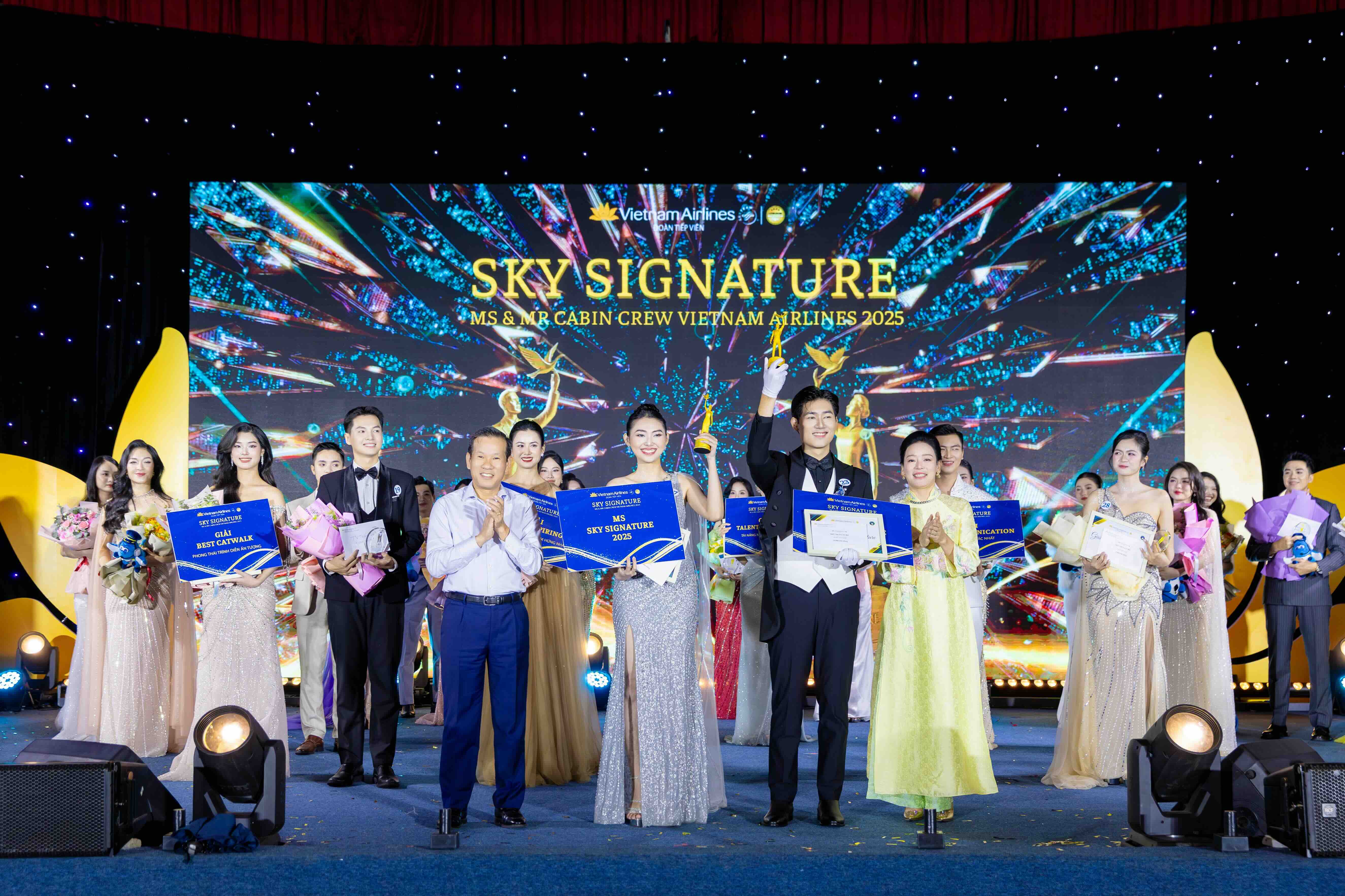 Chiều 07/10/2025, tại Trung tâm Văn hóa Hàng không (Hà Nội), đêm chung kết cuộc thi Ms & Mr Sky Signature 2025 do Vietnam Airlines tổ chức đã khép lại trong không khí trang trọng và đầy cảm xúc.